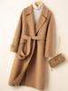 2025 Novo Outono e Inverno Estilo Coreano Lã Pura Feminino Gola de Terno Comprimento Médio Lã Pura Cor Sólida com Cadarço