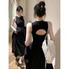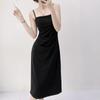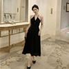 Vestido Preto Temperamento de Alças para Mulheres Verão Estilo Francês Hepburn Vestidinho Preto Design de Saia na Cintura Saia Quadril