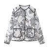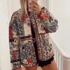 2023 nova jaqueta feminina versátil estampada com gola alta bolso manga comprida solta de algodão TT5-71314