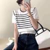 Verão novo contraste cor listrado manga curta malha suéter feminino solto design sentido nicho costura chique ombro top mulheres