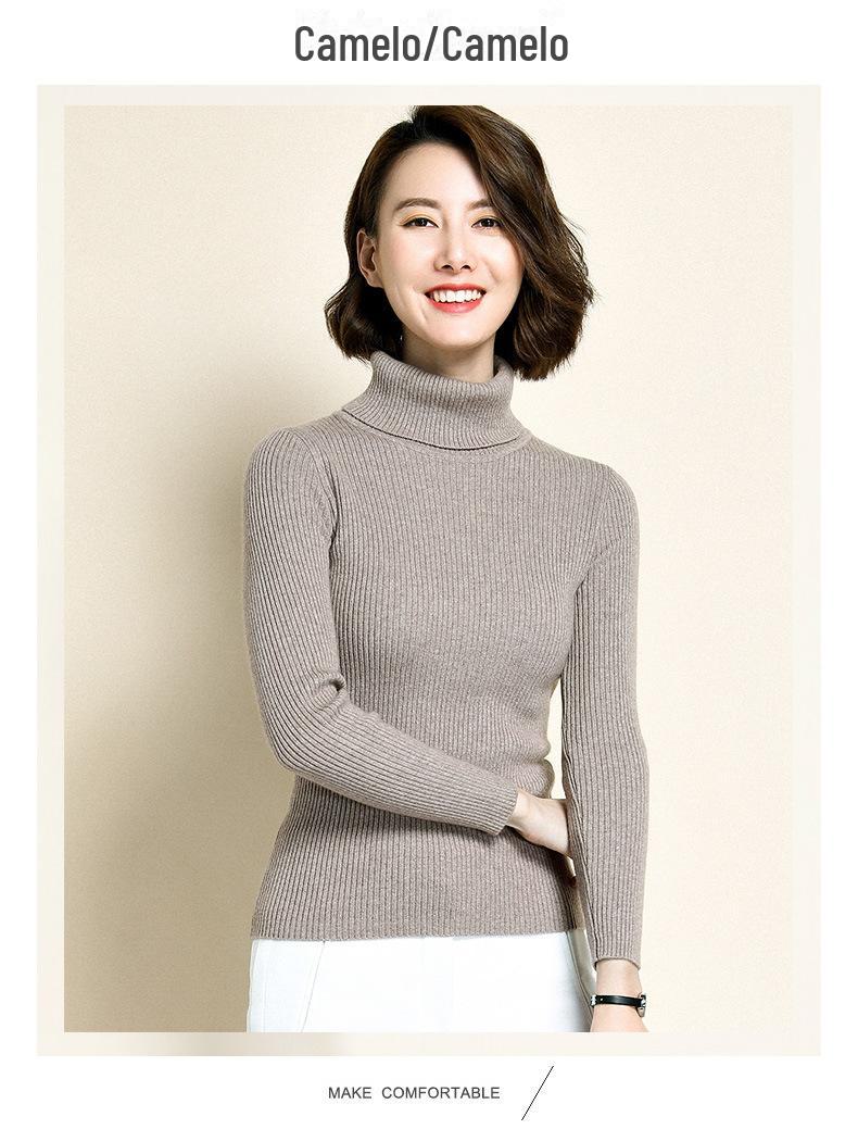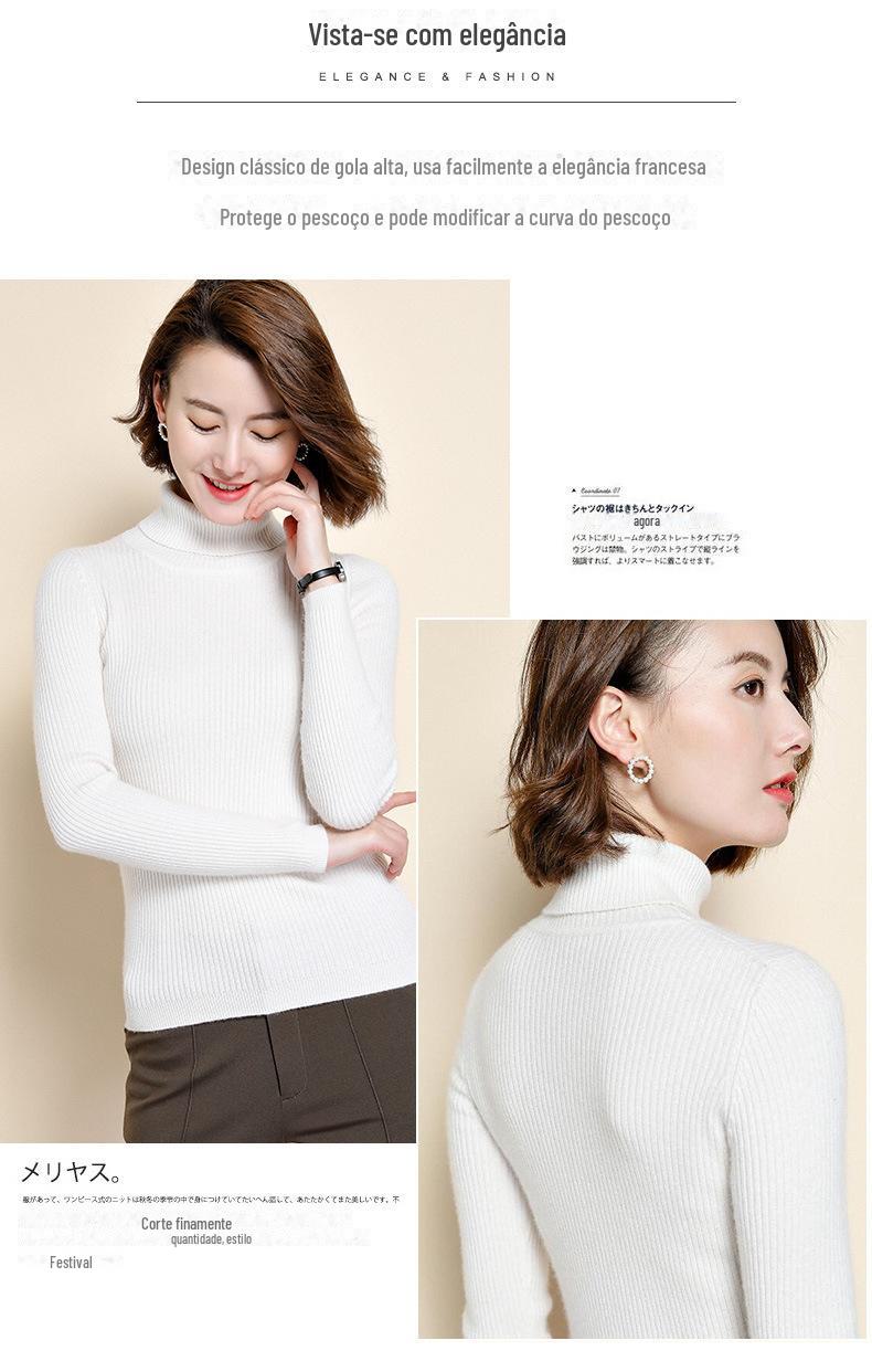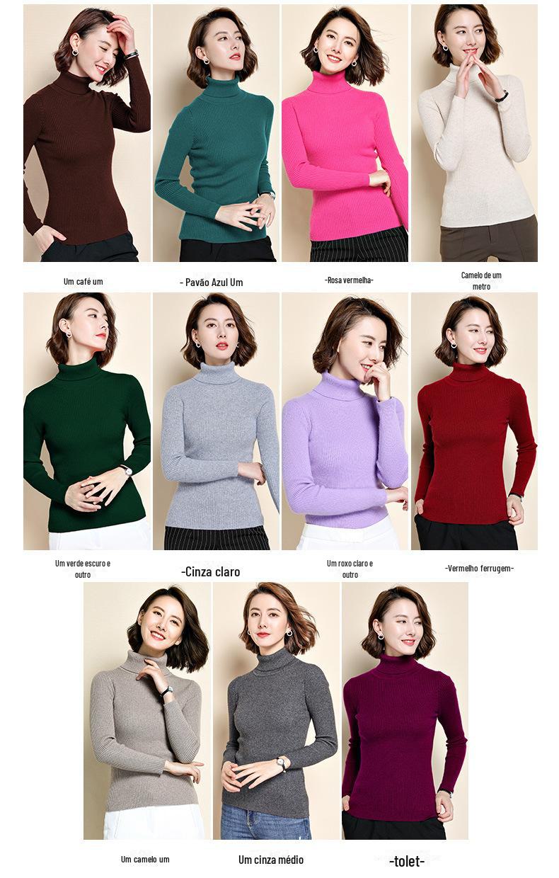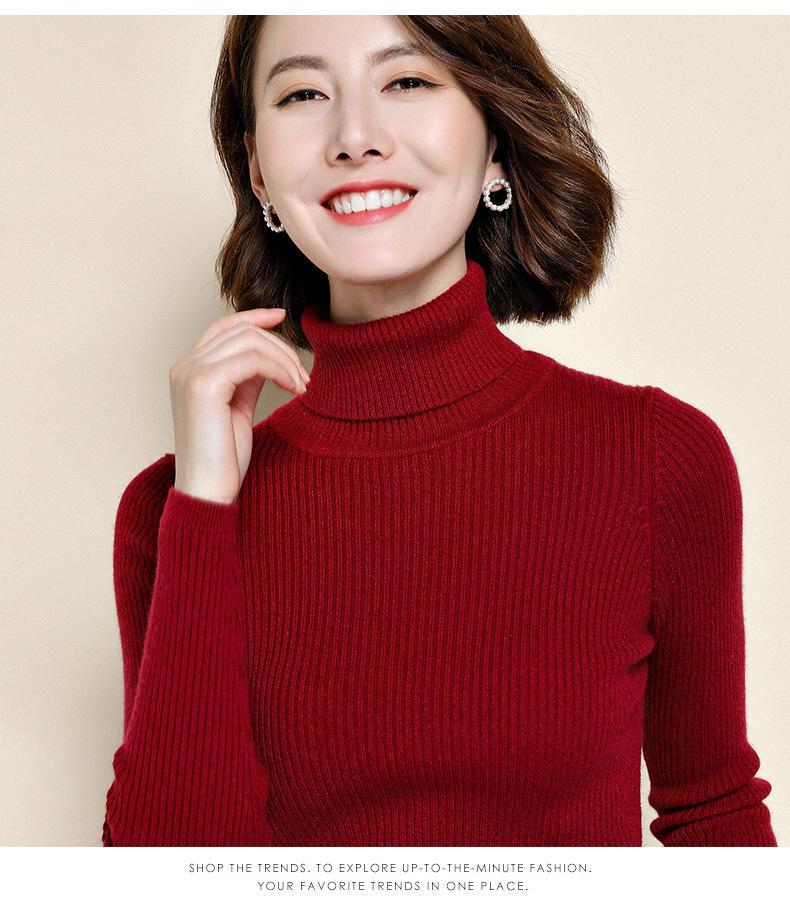 2021 versão coreana do pulôver feminino gola alta camisa de fundo cor sólida magro moda camisola de malha fina gola pilha camisola feminina