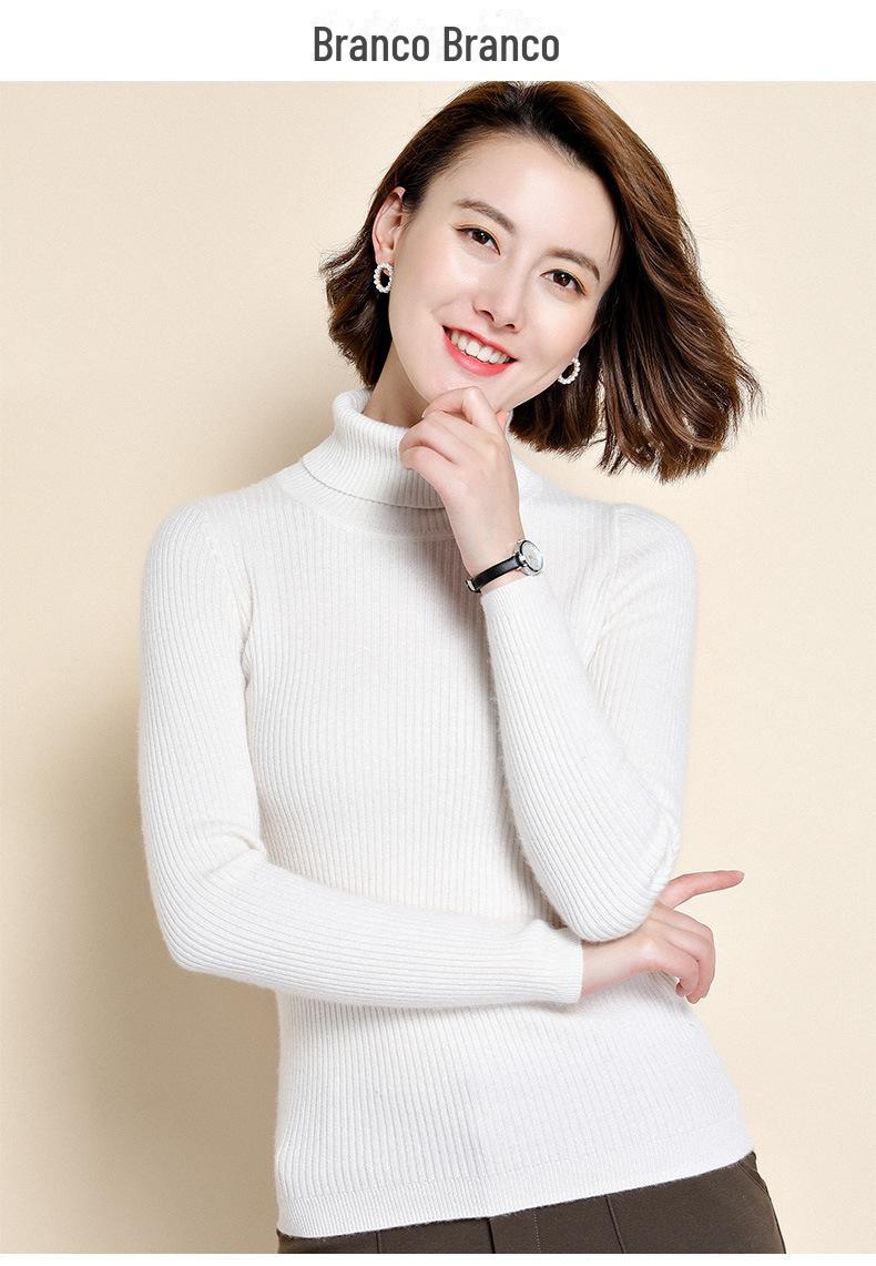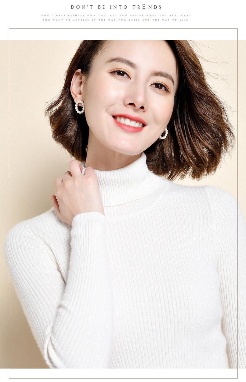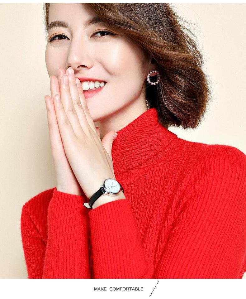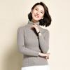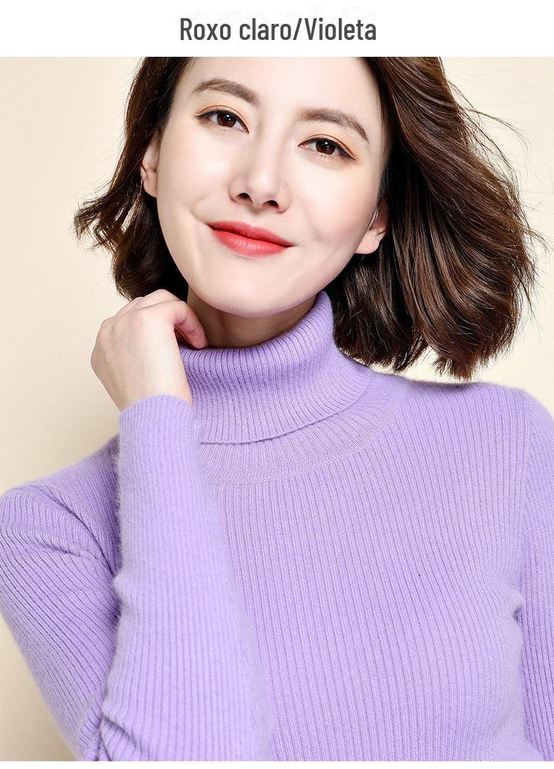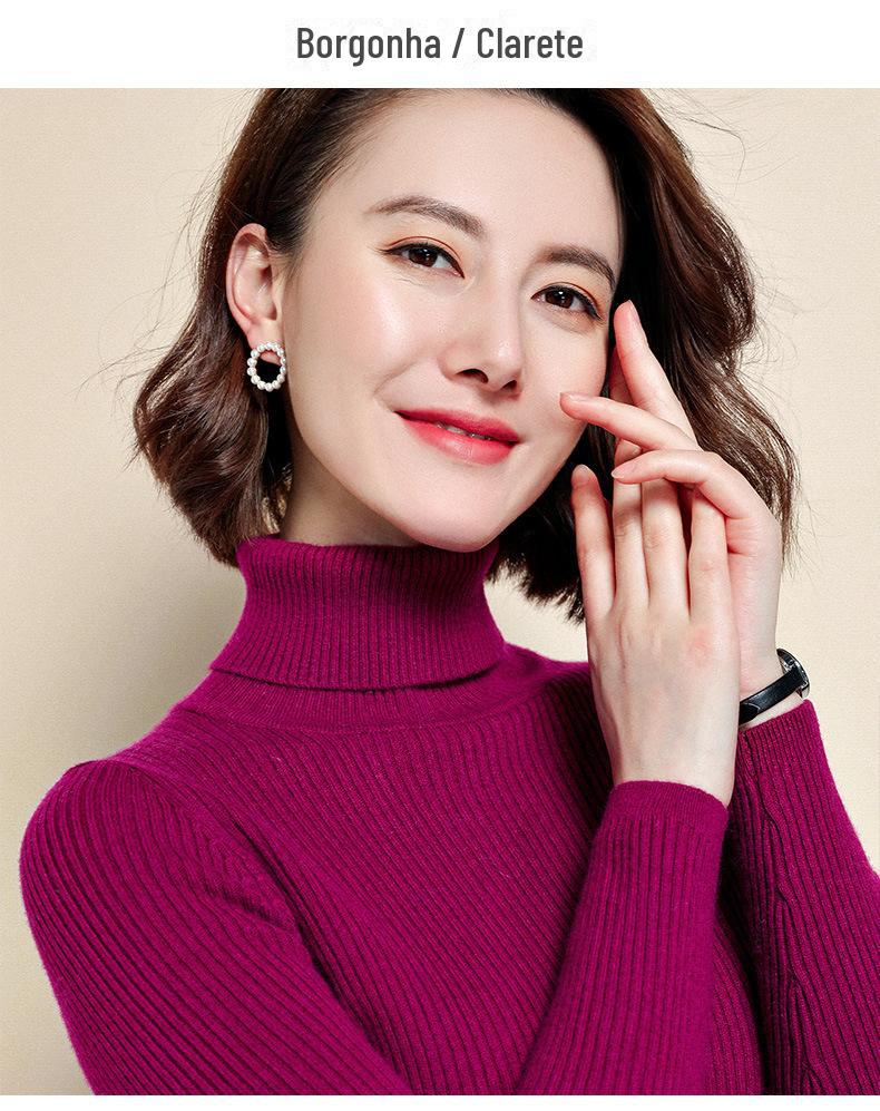 2021 versão coreana do pulôver feminino gola alta camisa de fundo cor sólida magro moda camisola de malha fina gola pilha camisola feminina