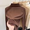 Suéter de gola alta feminino slim fit engrossado estudante outono e inverno apertado curto pulôver all-match manga comprida malha base camisa para mulheres