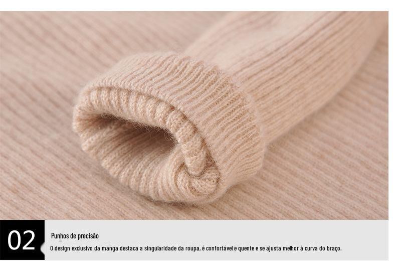 Outono nova cor contraste camisa de fundo de lã feminina em torno do pescoço solto pulôver camisola de lã camélia camisola de malha tendência