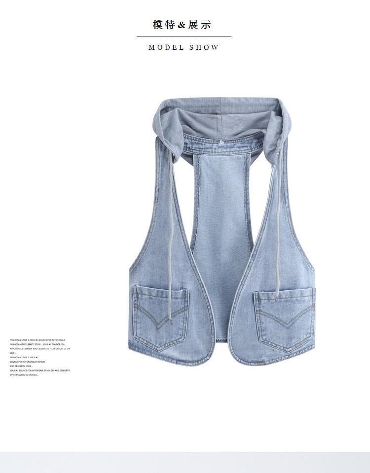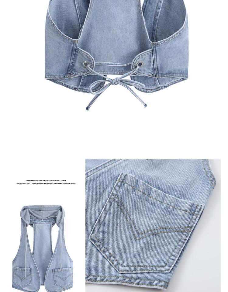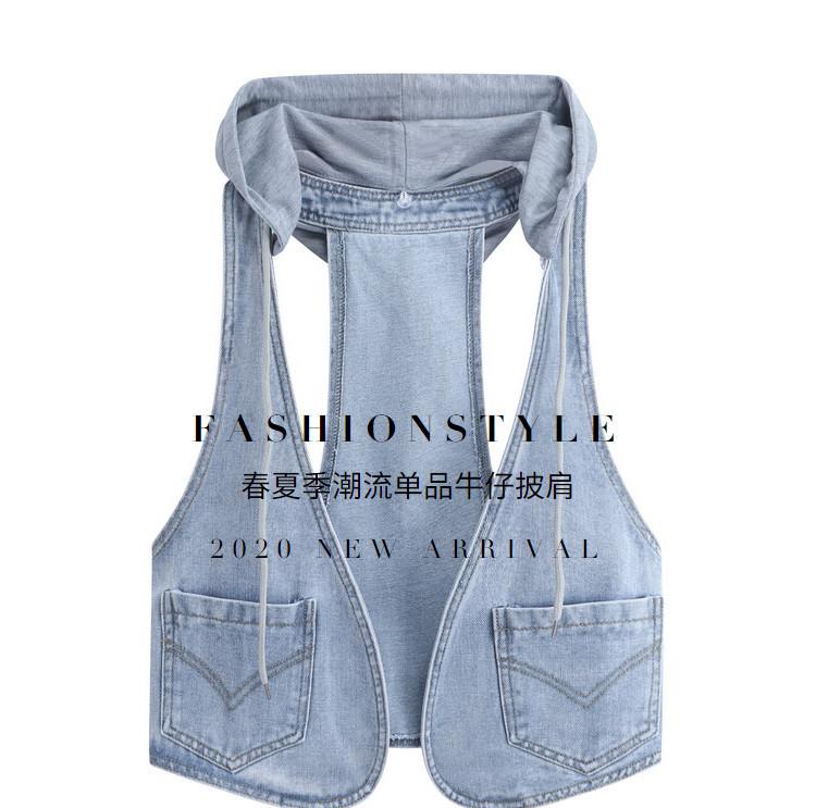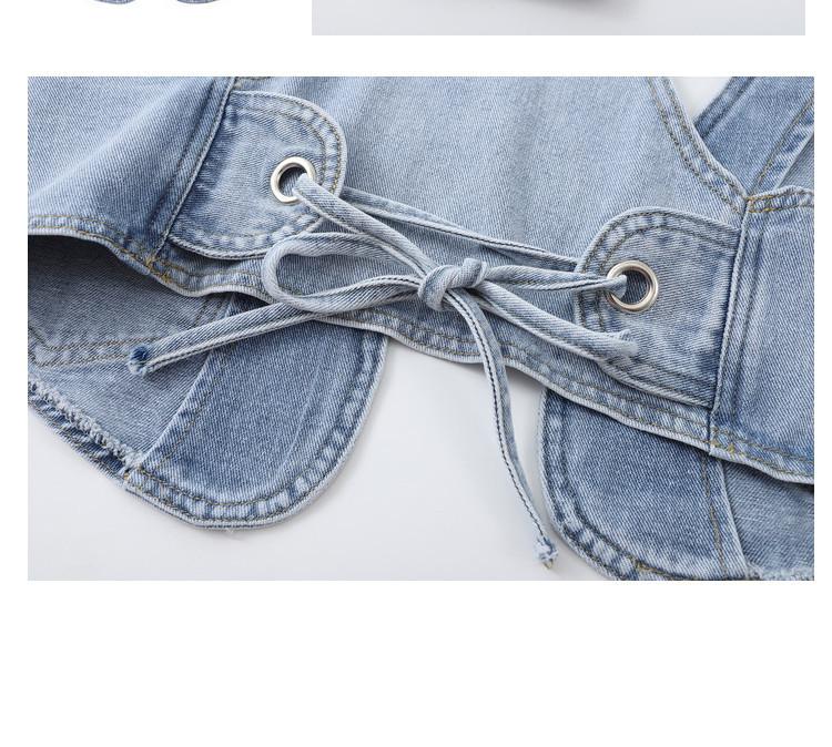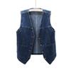 Colete Denim Mulheres Jaqueta de mangas curtas Estilo coreano Colete Novo Verão Pescoço Pequeno Colete All-match cintura fina