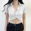 Primavera e Verão Novo Estilo Coreano Versátil Retrô Torcido Camisa Polo Decote V Botão Curta Slim Camiseta Bm Top Moderno