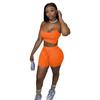 Roupa Feminina Europeia e Americana Transfronteiriça 2024 Novo Conjunto da Moda Top Cropped Regata Cor Sólida e Shorts Ciclista Conjunto de Duas Peças para Garotas Quentes