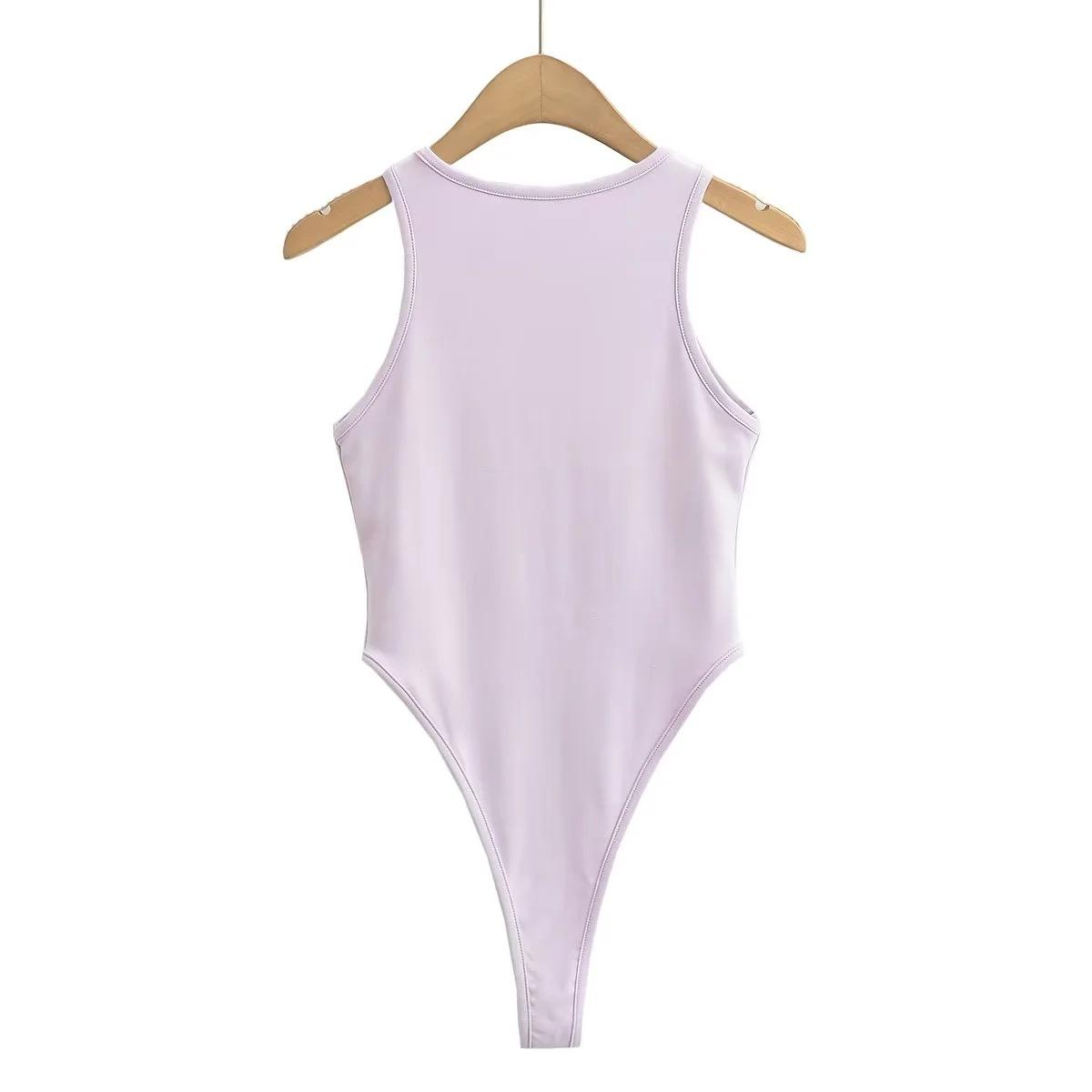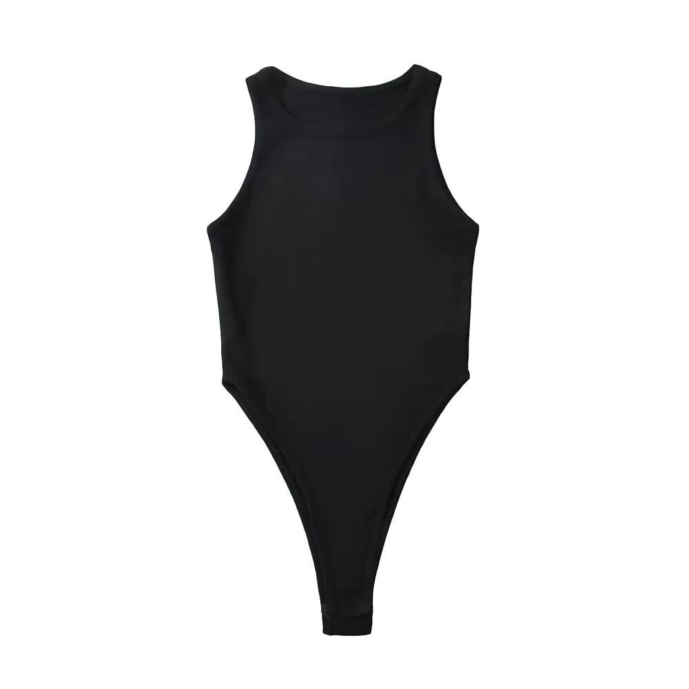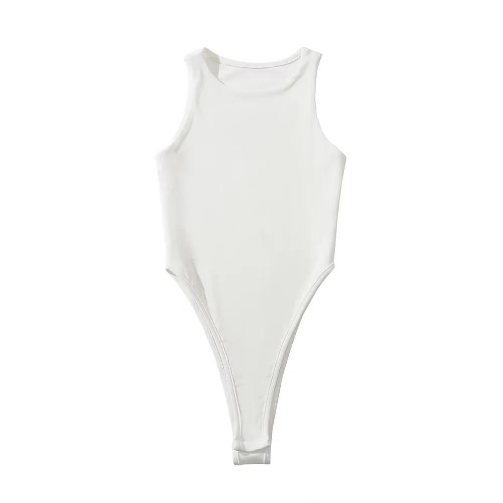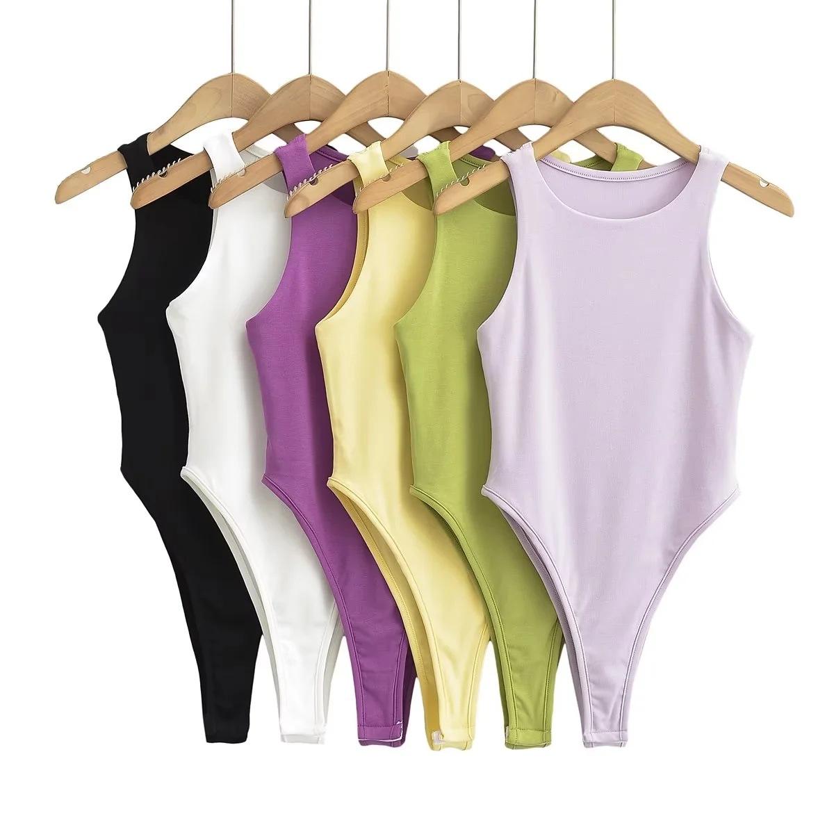 Macacão Sexy Sem Mangas Slim-Fit Feminino Europeu e Americano Mulheres 2023 Verão Cor Sólida Body Justo Macacão Feminino