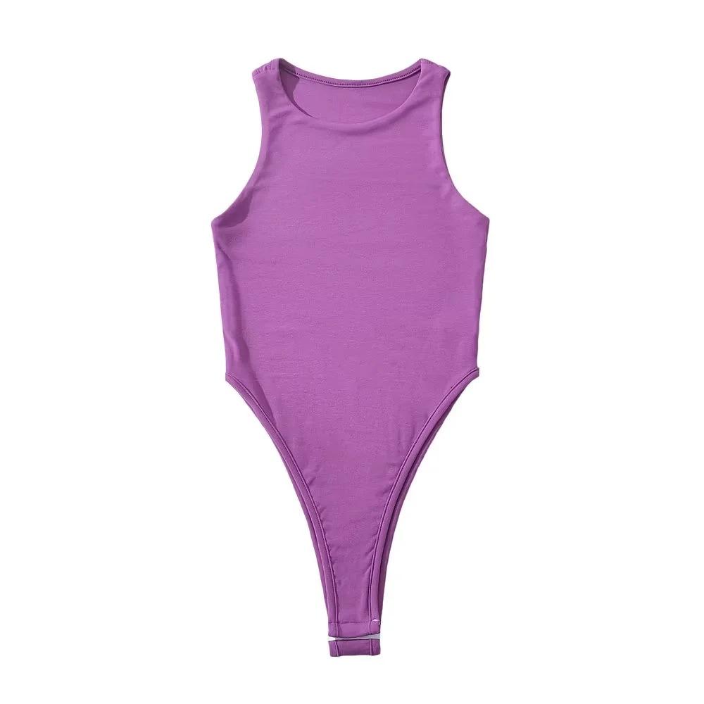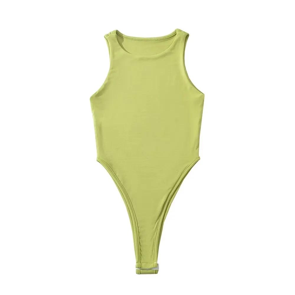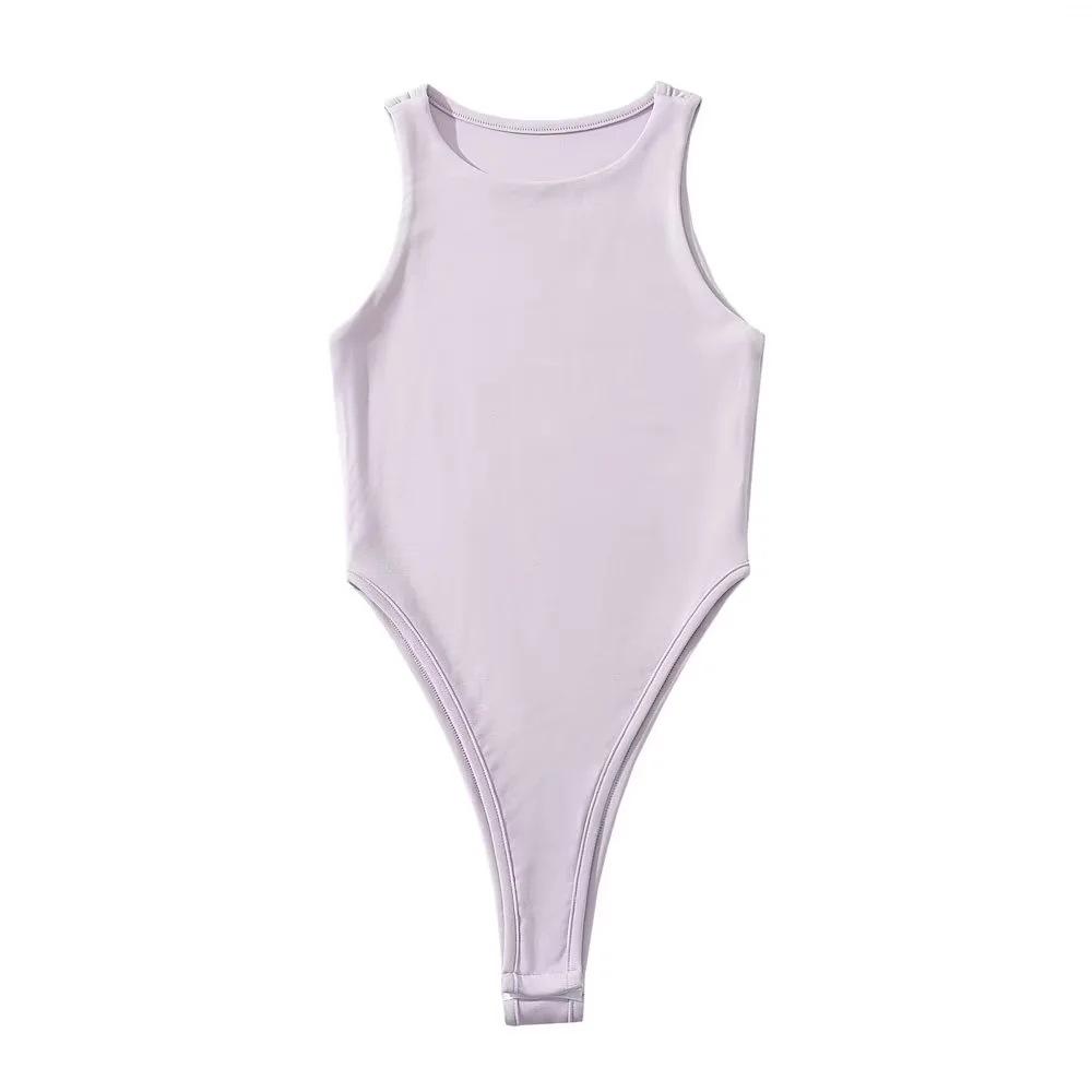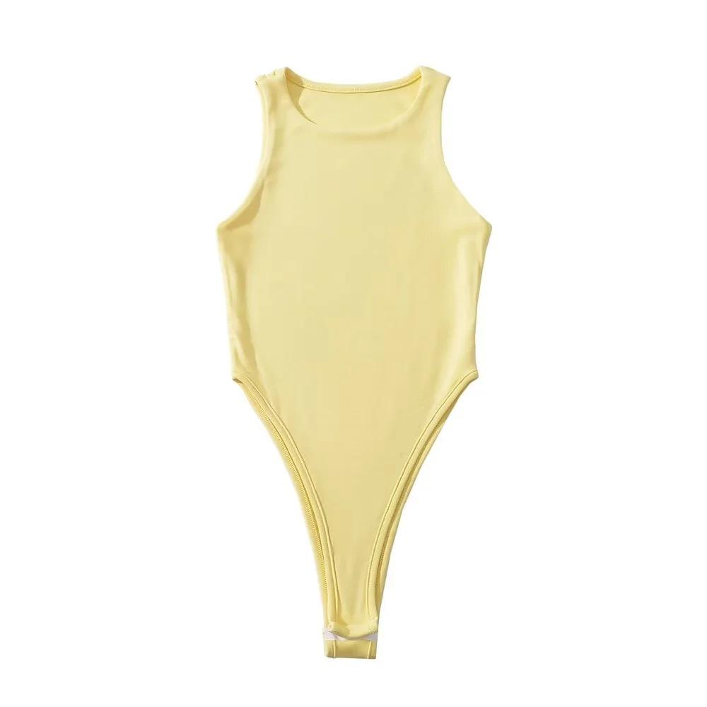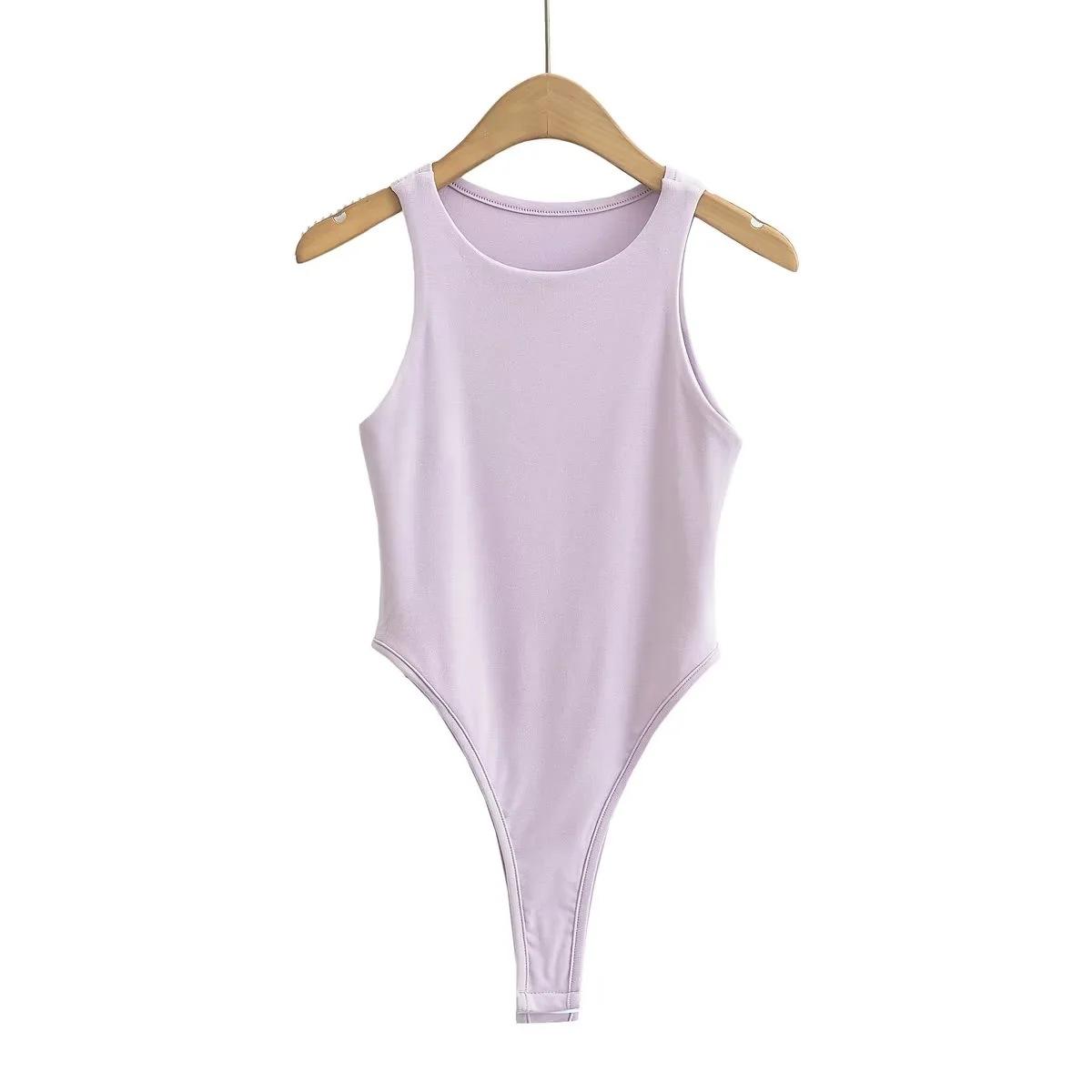 Macacão Sexy Sem Mangas Slim-Fit Feminino Europeu e Americano Mulheres 2023 Verão Cor Sólida Body Justo Macacão Feminino