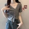 Branco Jin Verão Novo plus size Moda Feminina All-match Irregular manga curta T-shirt feminina gordinha menina Cobertura da barriga Top