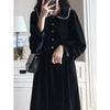Roupa de Outono com Elegante Vestido Preto Pequeno Hepburn Retrô Francês, Look Emagrecedor na Cintura, Vestido Tricotado Rabo de Peixe, Gola Boneca