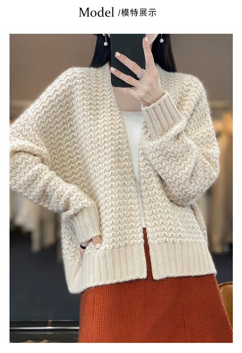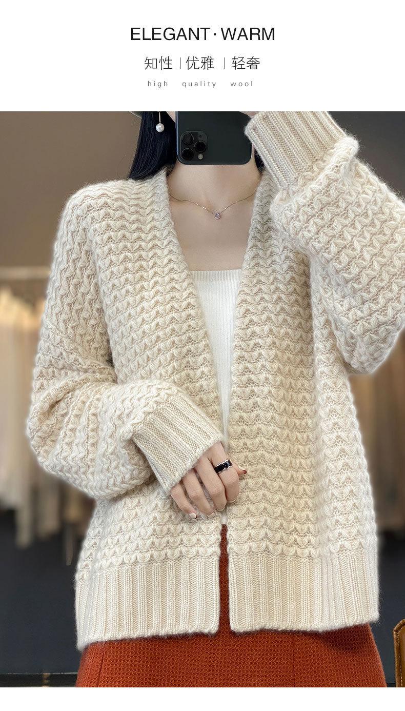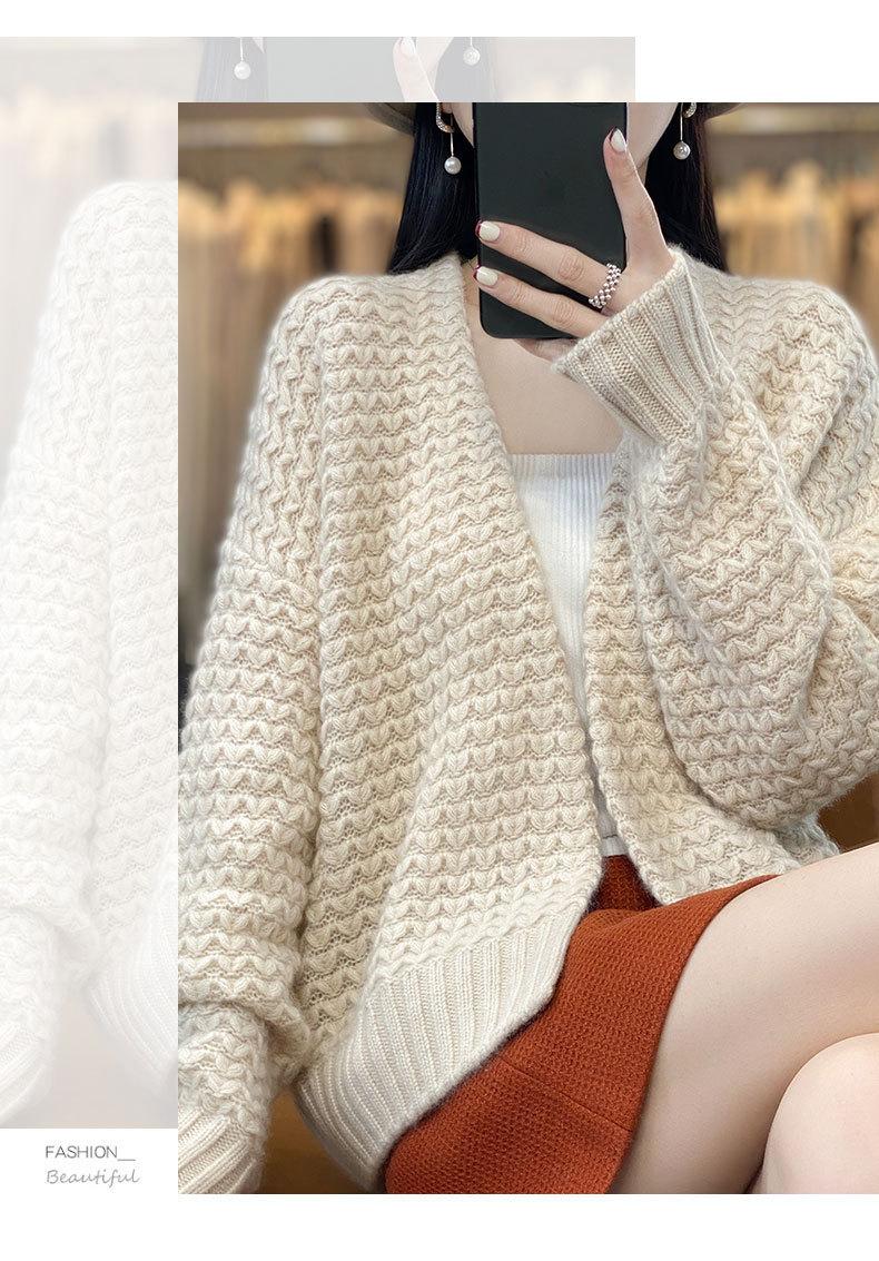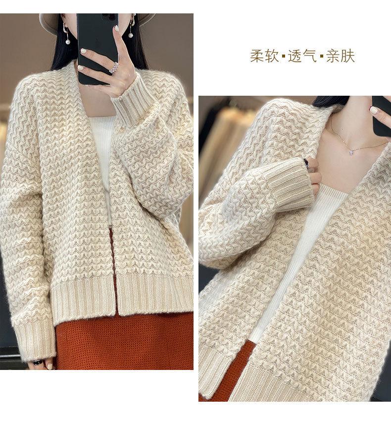 Outono e inverno moda Novo estilo preguiçoso solto casual suéter feminino V-neck outerwear suéter malha cardigan cashmere