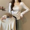 Compre Camiseta feminina de veludo alemão quente com gola quadrada e manga comprida, corte slim, curta, com base interna e ombro de fora no atacado no Joom.pro