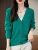 Suéter de Algodão Puro Decote V Cardigã Tricotado para Mulheres 2024 Outono e Inverno Novo Estilo Ombro Caído Estilo Preguiçoso Solto Manga Longa Casaco Top