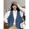 Outono Novo Denim Vest Mulheres estilo coreano versátil costura curta padrão grande jaqueta de bolso colete top fashion