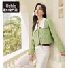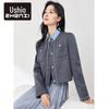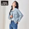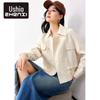 Zhenqi nova moda sarja engrossada casaco curto manga comprida reta pequeno commuter top CN203