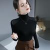 Camisa de Base de Gola Alta para Mulheres Outono e Inverno Nova Camisa de Costura de Malha Micropermeável de Manga Longa Estilo Ocidental