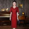 Cheongsam para a sogra de meia-idade primavera, verão e outono novo vestido de banquete de casamento vestido falso de duas peças Alto sentido