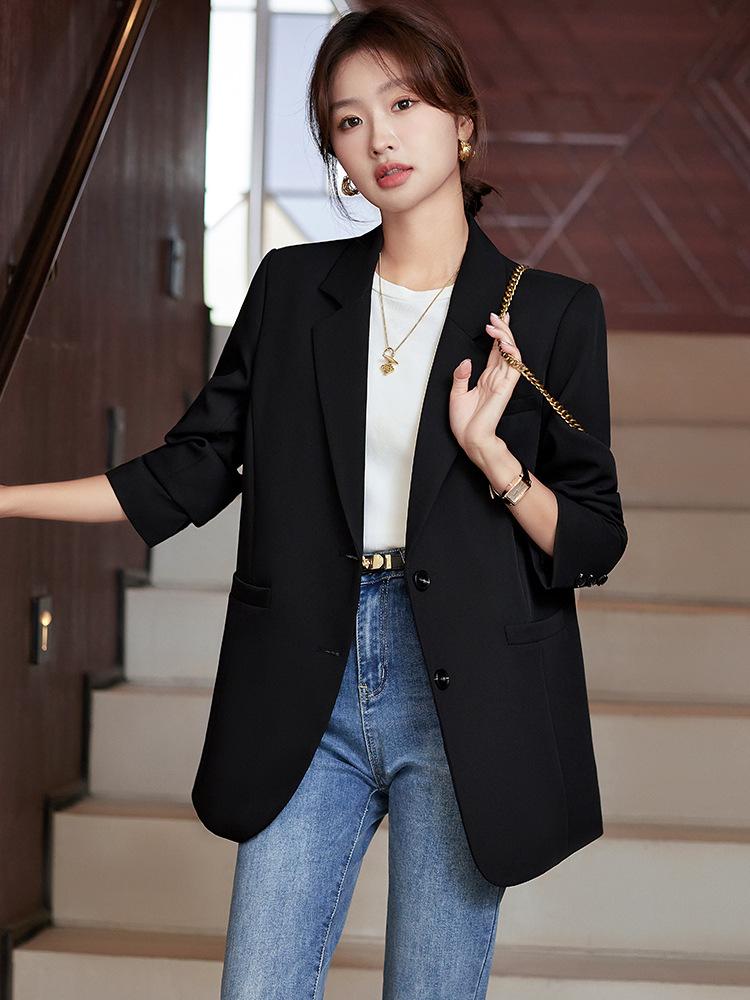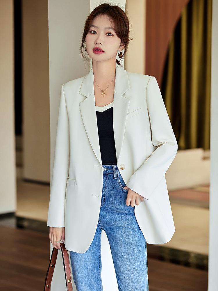 Jaqueta Estilo Coreano Estilo Feminino Primavera e Outono 2023 Novo Design Sense Traseiro Split Loose Casual Suit Top