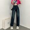 Jeans de cintura alta para mulheres outono 2022 novo High Street solto tamanho grande mm emagrecimento reto ins calças de chão de perna larga