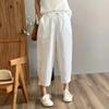 Calções de Algodão e Linho para Mulheres 2023 Verão Novo Estilo Fivela Solto Cordão Cintura Elástica Combinação de Cores Casual Versátil Calças Harem
