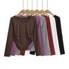Estilo europeu e americano cintura formiga pescoço redondo plissado manga comprida camiseta feminina 2024 primavera quente menina apertado curvo emagrecimento top