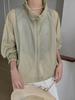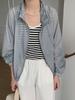 Jaqueta Lino para Caminhada Outdoor com Gola Alta e Proteção Solar Feminina 2025 Verão Nova Casual Solta Estampada com Zíper