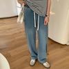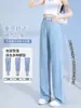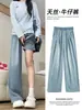 Jeans Tencel Feminino Verão 2025 Novo Estilo Pequeno Solto Reto Casual Cintura Alta Drapeado Seda Gelo Calças Perna Larga