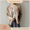 100 Lã Outono e Inverno 2024 Novo Cardigan Curto Simples Elegante de Gola Redonda Solto e Respirável para Mulheres Suéter Tricotado