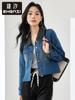 Zhenqi nova lapela da moda lavada Denim short coat mulheres manga comprida reta top pequeno CN773