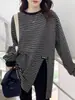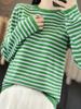 Camisa de base de malha listrada de pelúcia confortável e macia para mulheres Primavera Lixamento Solto Casual Camiseta de manga comprida para mulheres
