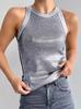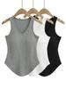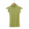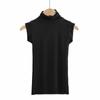 Verão Novo Estilo Europeu e Americano Cor Sólida Gola Alta Sem Mangas Ajustada Camiseta Regata C7825 Respirável Casual Versátil
