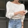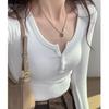 Camiseta Branca Chic com Botões para Mulheres 2023 Outono e Inverno Nova Estilo Coreano Slim de Manga Comprida Camiseta Básica Top Curto com Decote Baixo