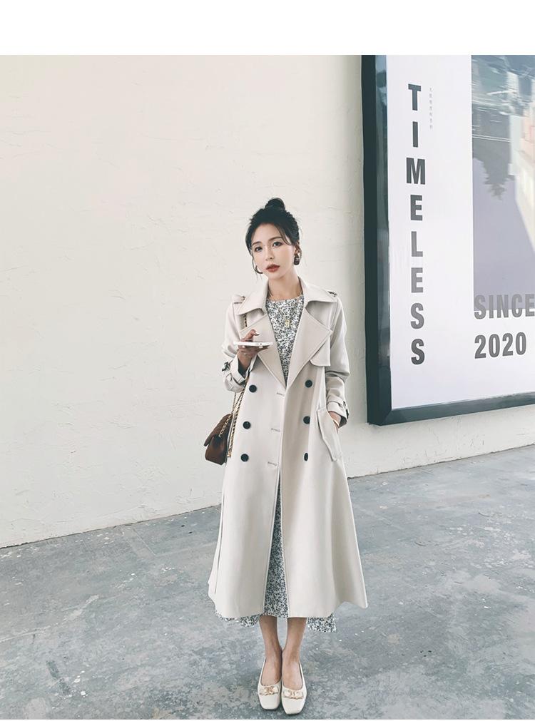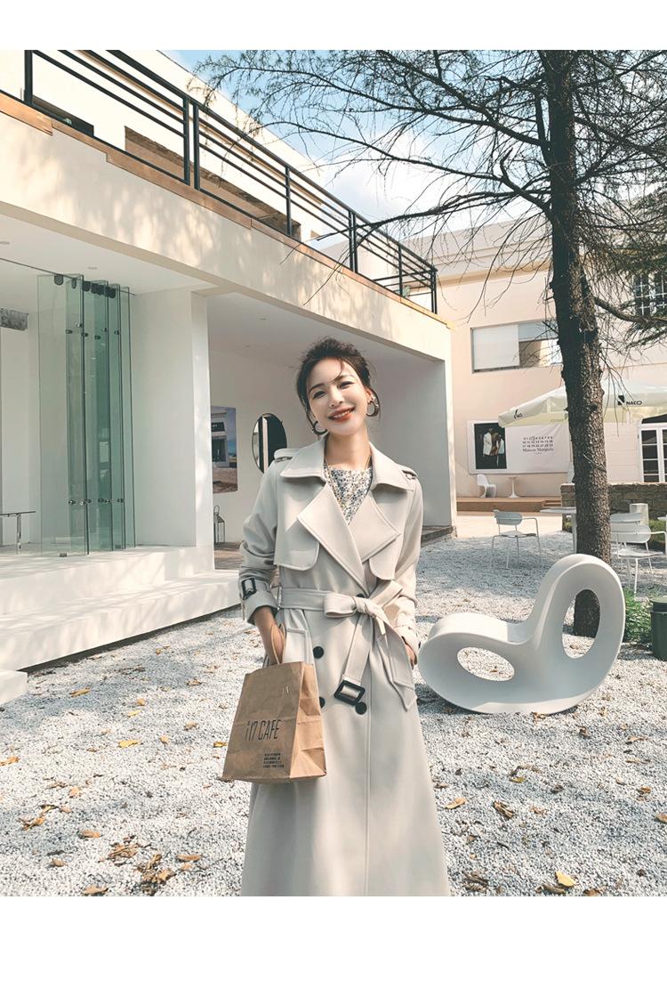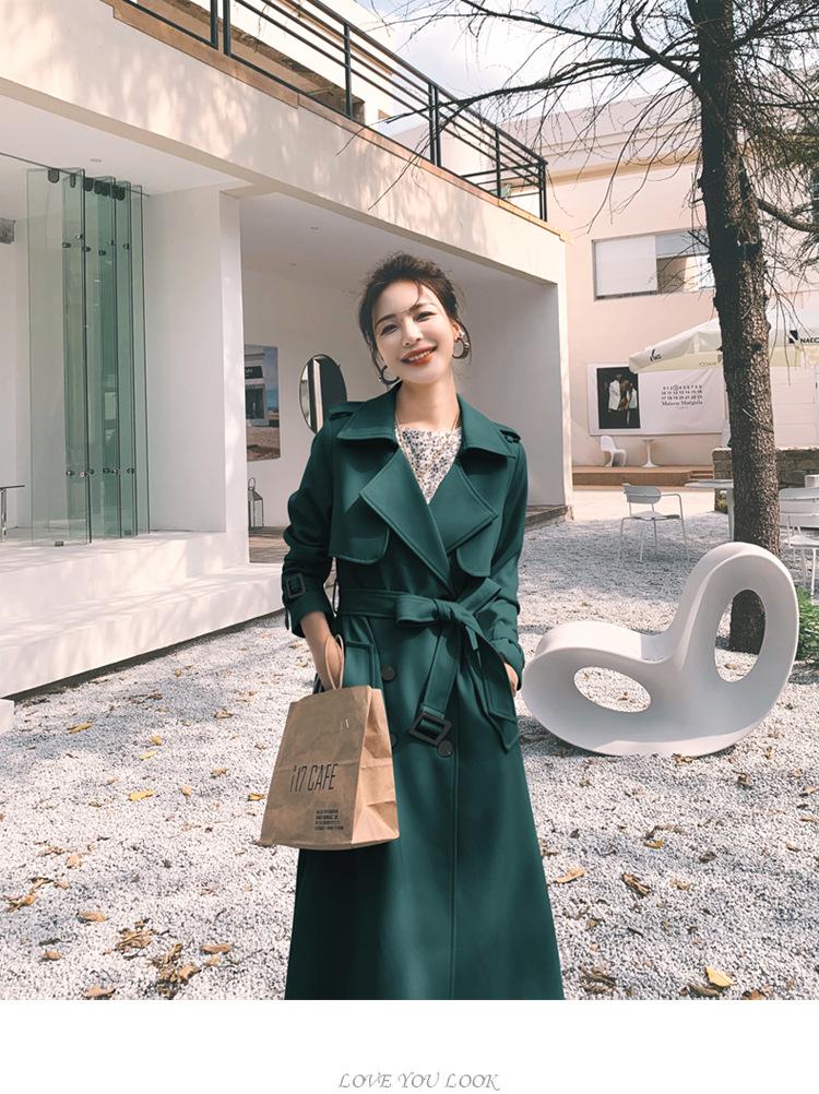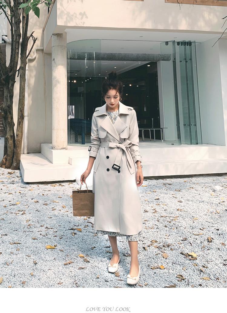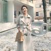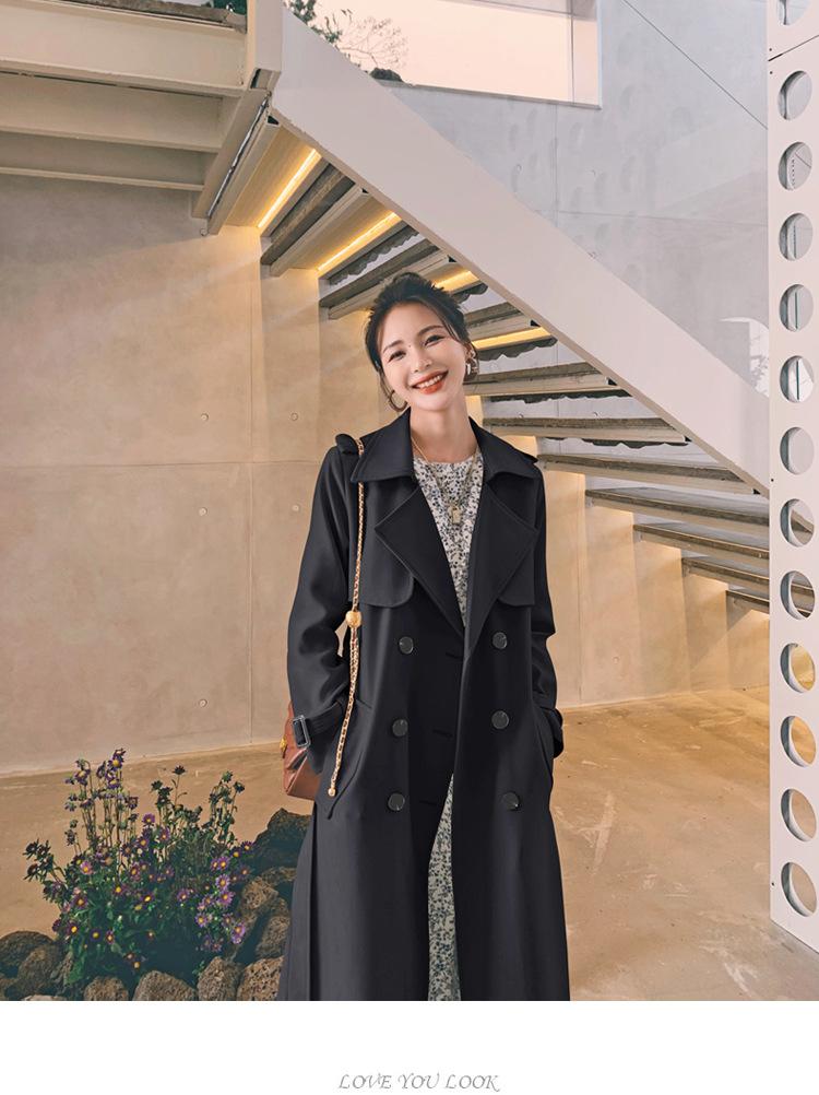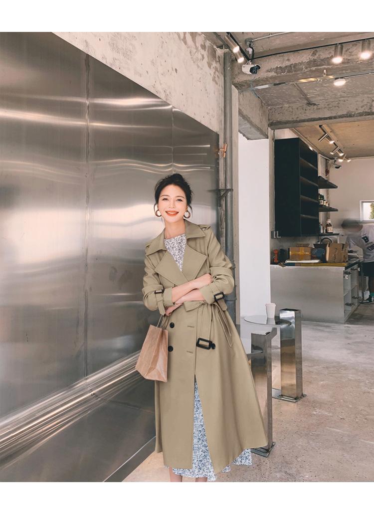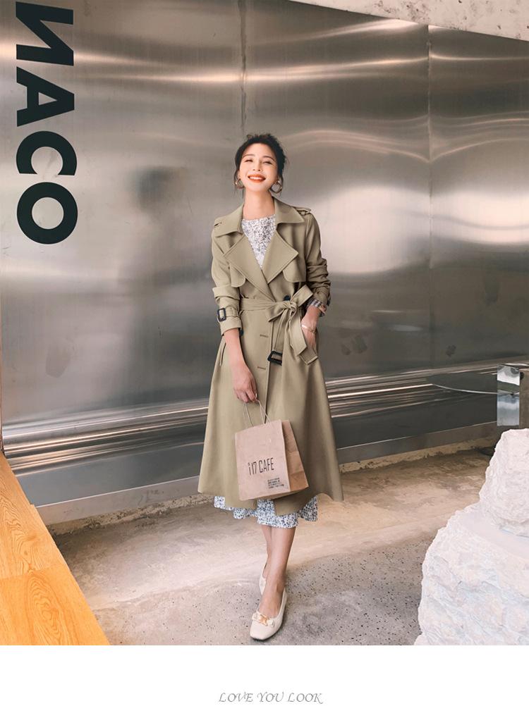 Real shot estilo britânico elegante corta-vento feminino 2024 primavera e outono novo coreano casual longo deusa estilo joelheira