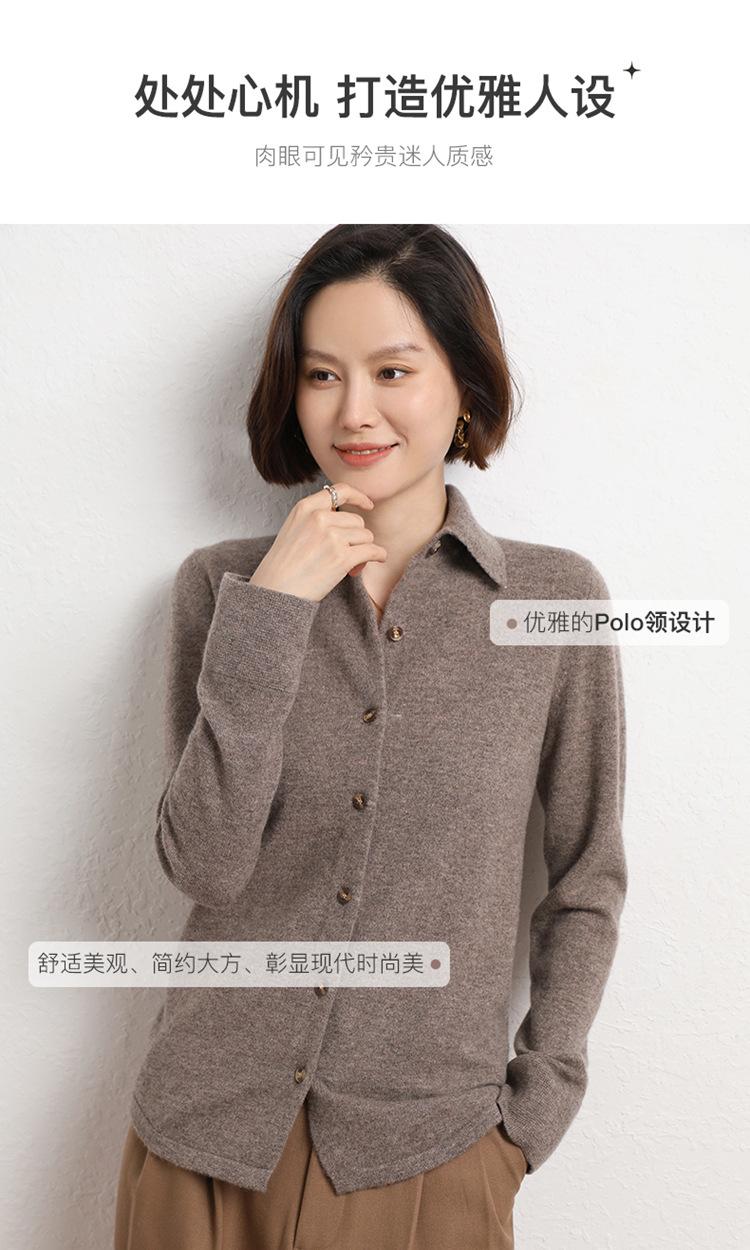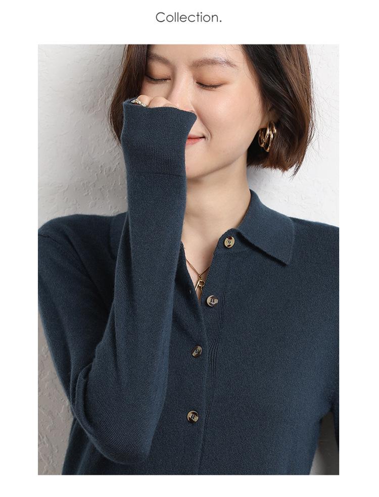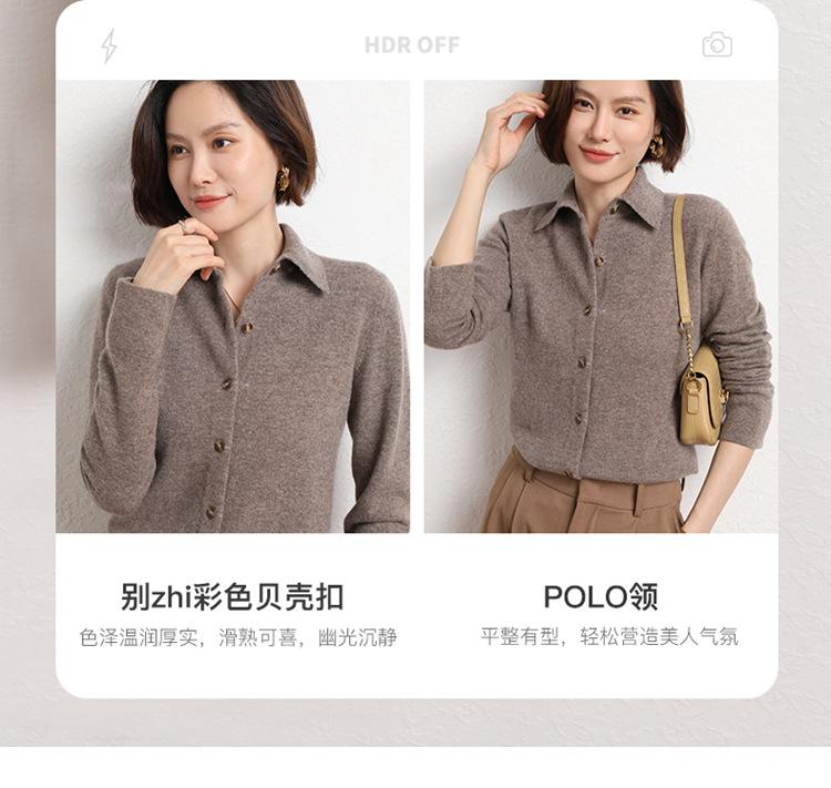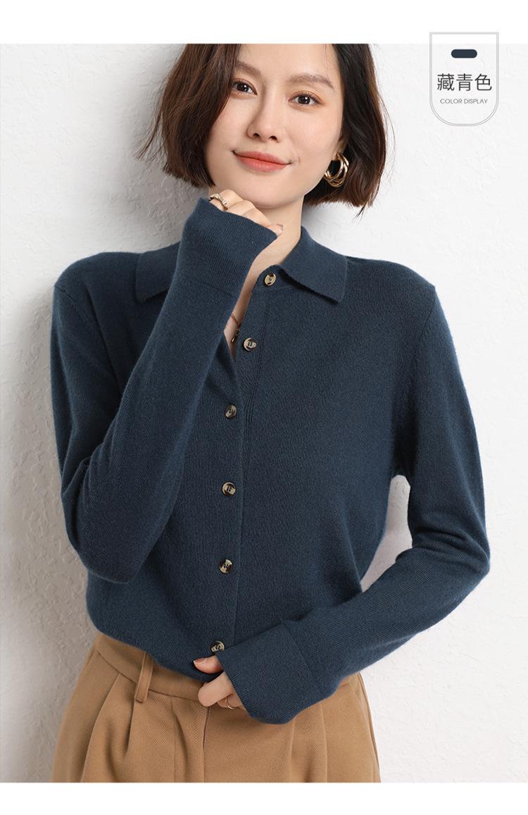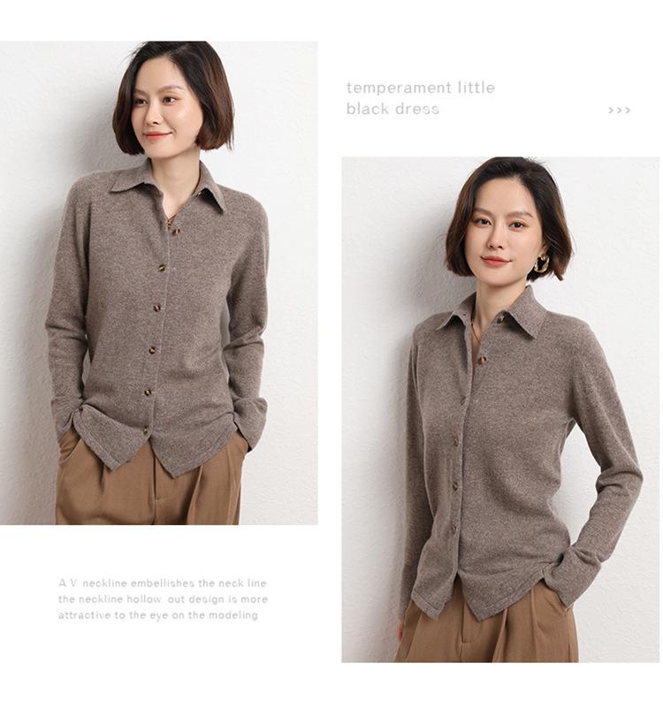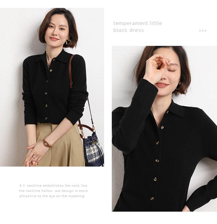 Nova camisa de malha com gola polo para outono, suéter feminino solto de manga comprida, cardigan sem caxemira, jaqueta elegante com lapela