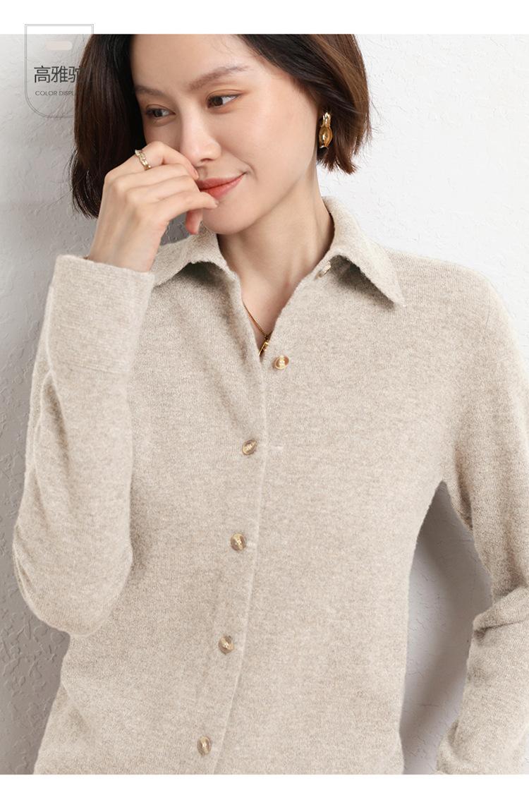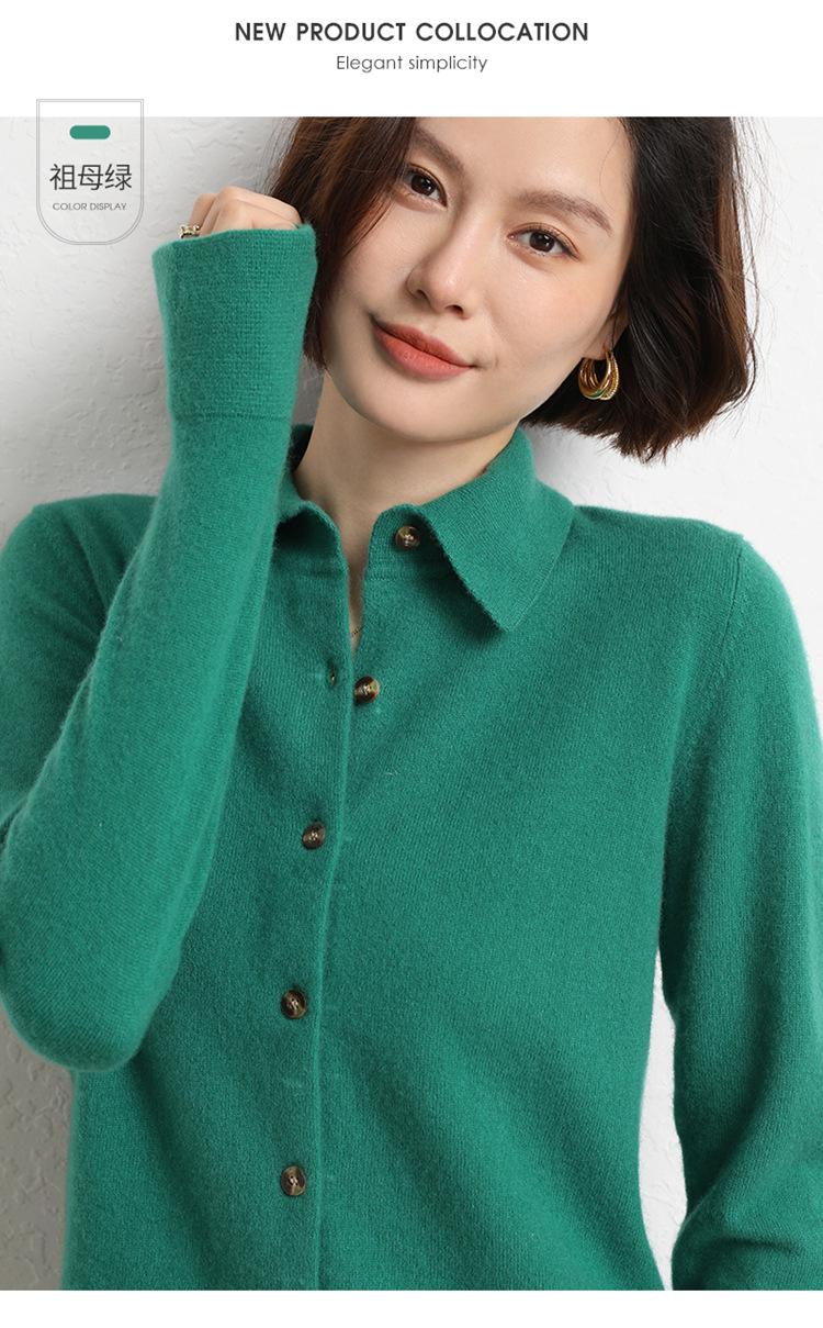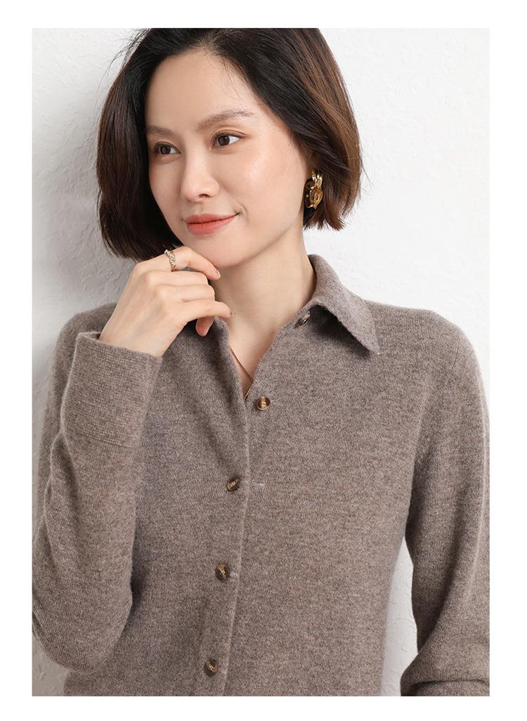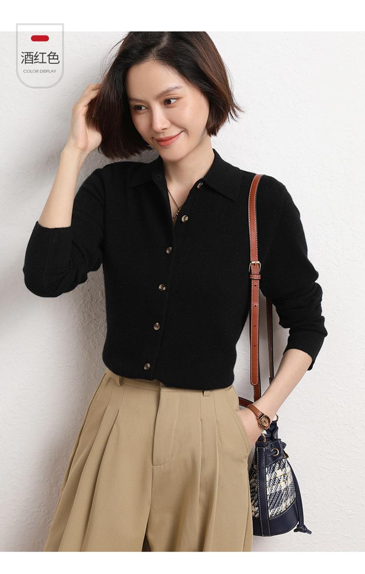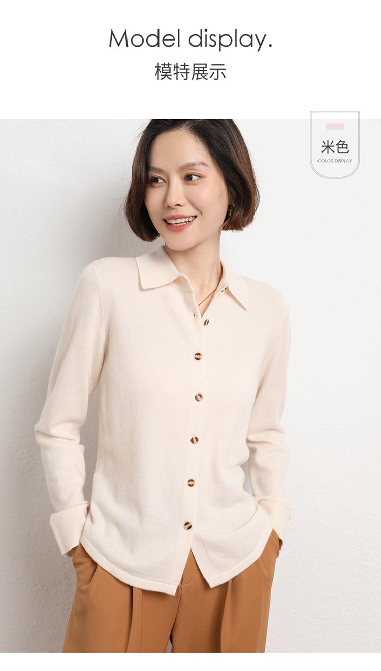 Nova camisa de malha com gola polo para outono, suéter feminino solto de manga comprida, cardigan sem caxemira, jaqueta elegante com lapela