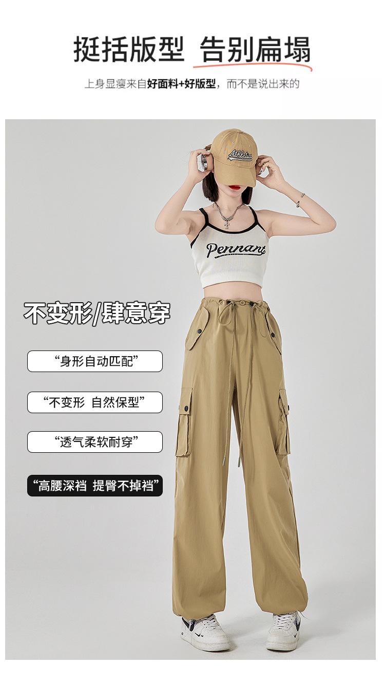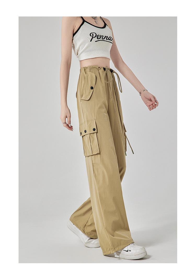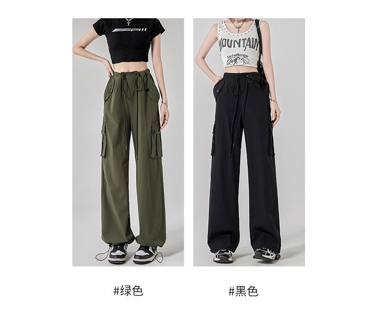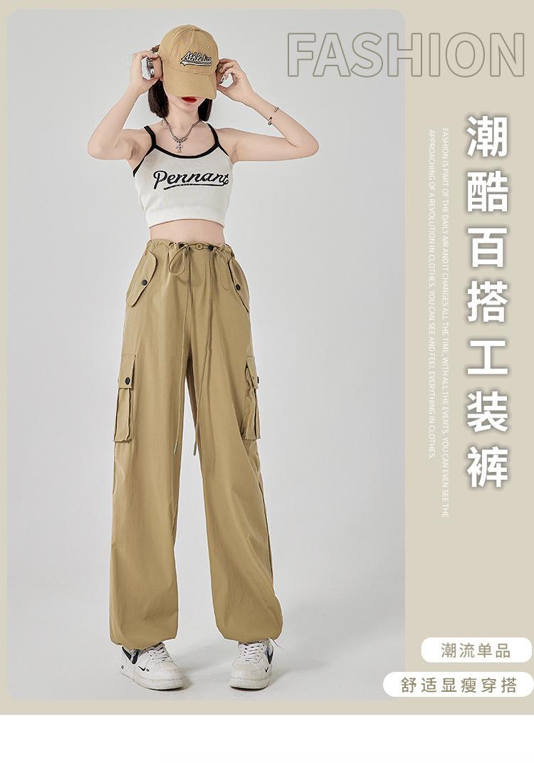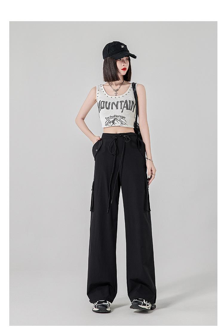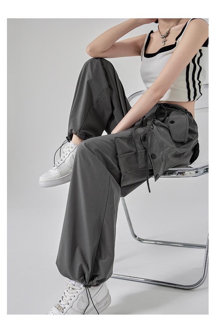 Macacão Estilo Americano Calças Femininas Verão Fino Cintura Alta Calças de Perna Larga Menina Quente Soltas Casuais Secagem Rápida Calças Esportivas