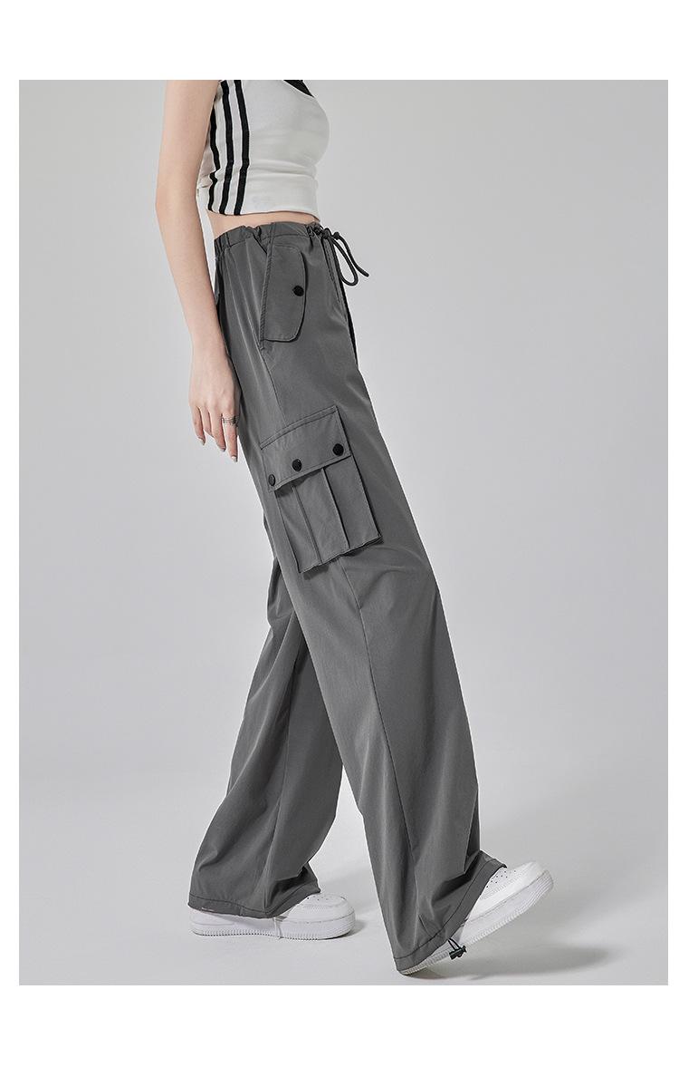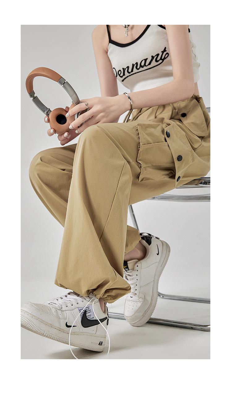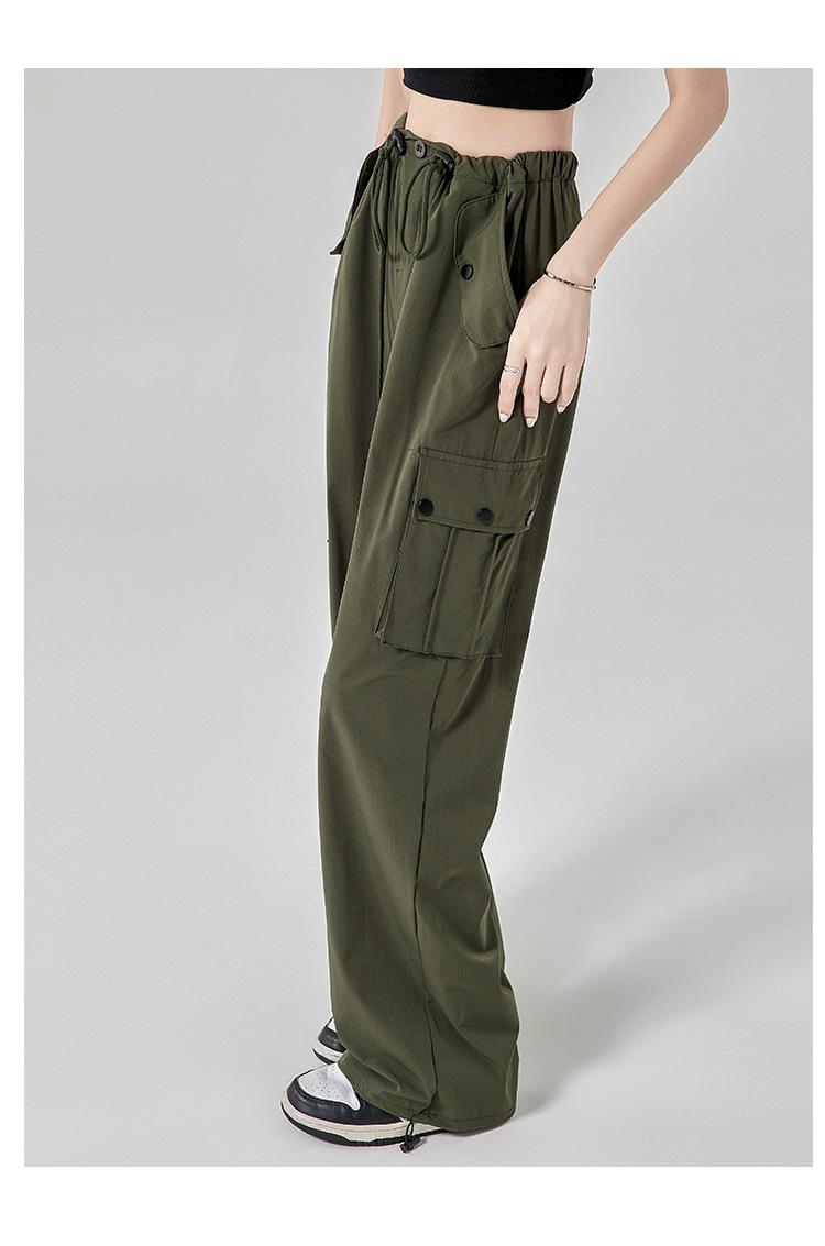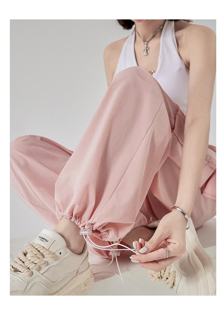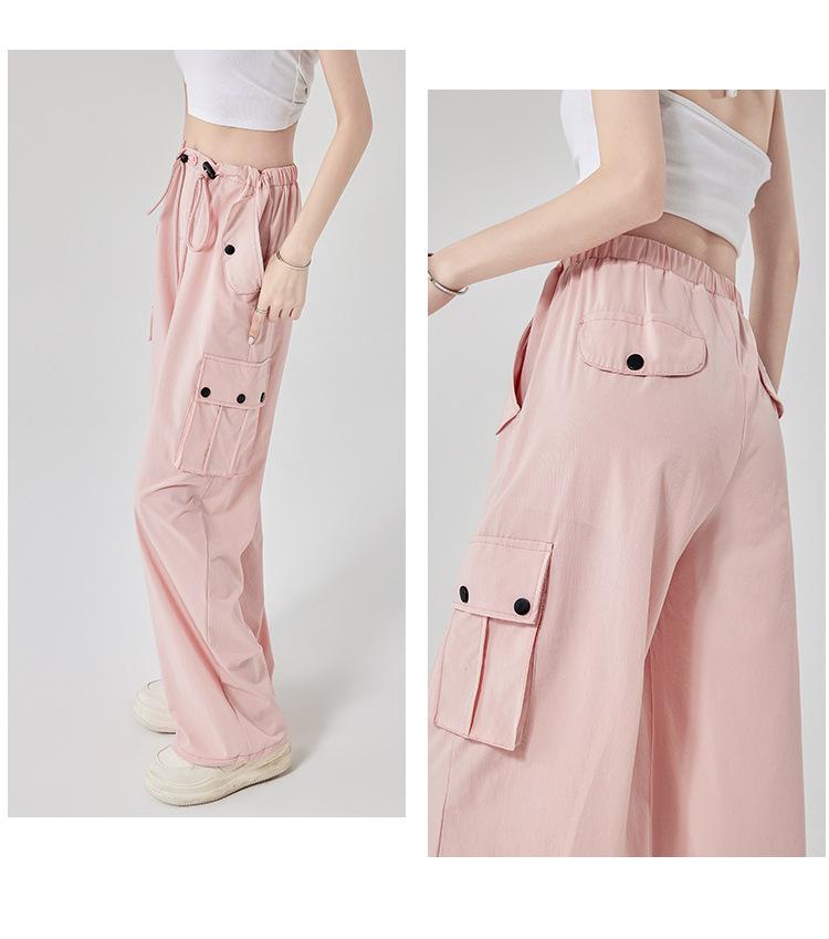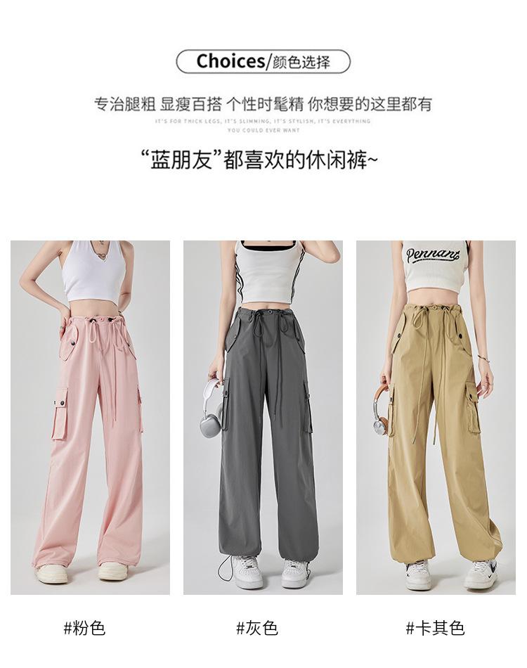 Macacão Estilo Americano Calças Femininas Verão Fino Cintura Alta Calças de Perna Larga Menina Quente Soltas Casuais Secagem Rápida Calças Esportivas