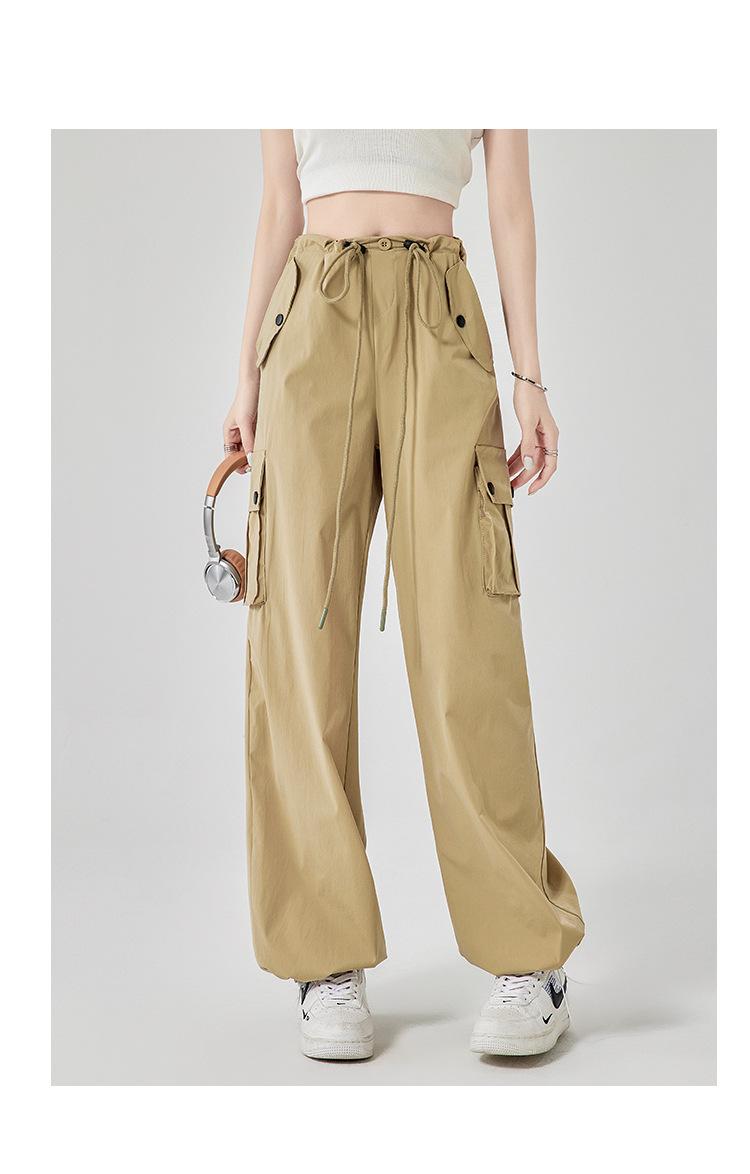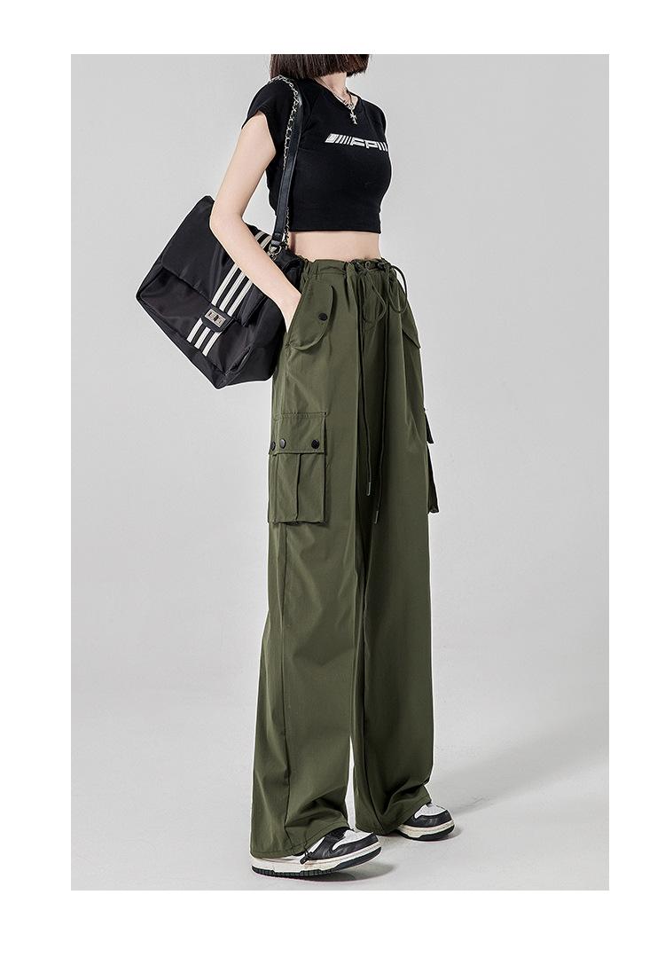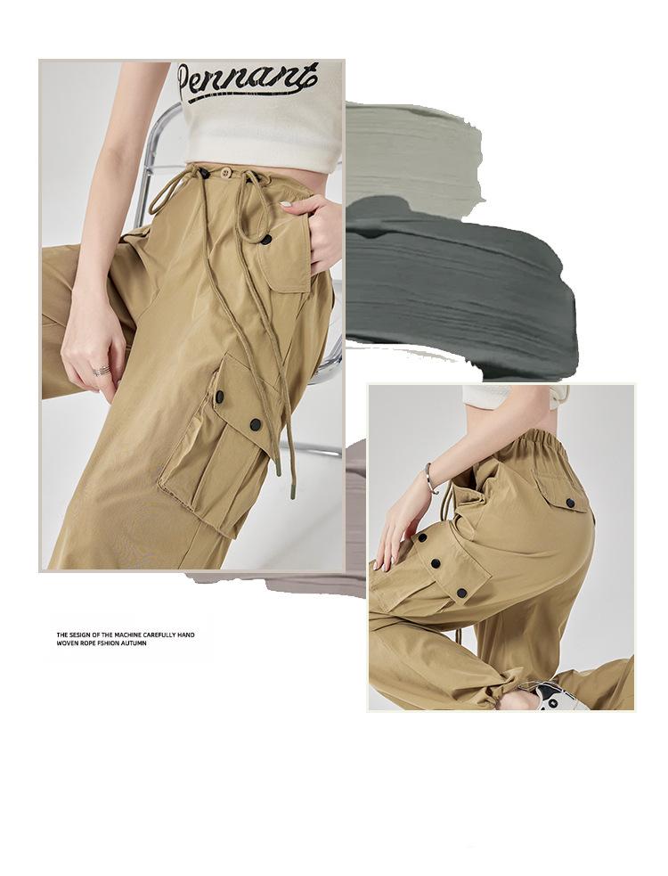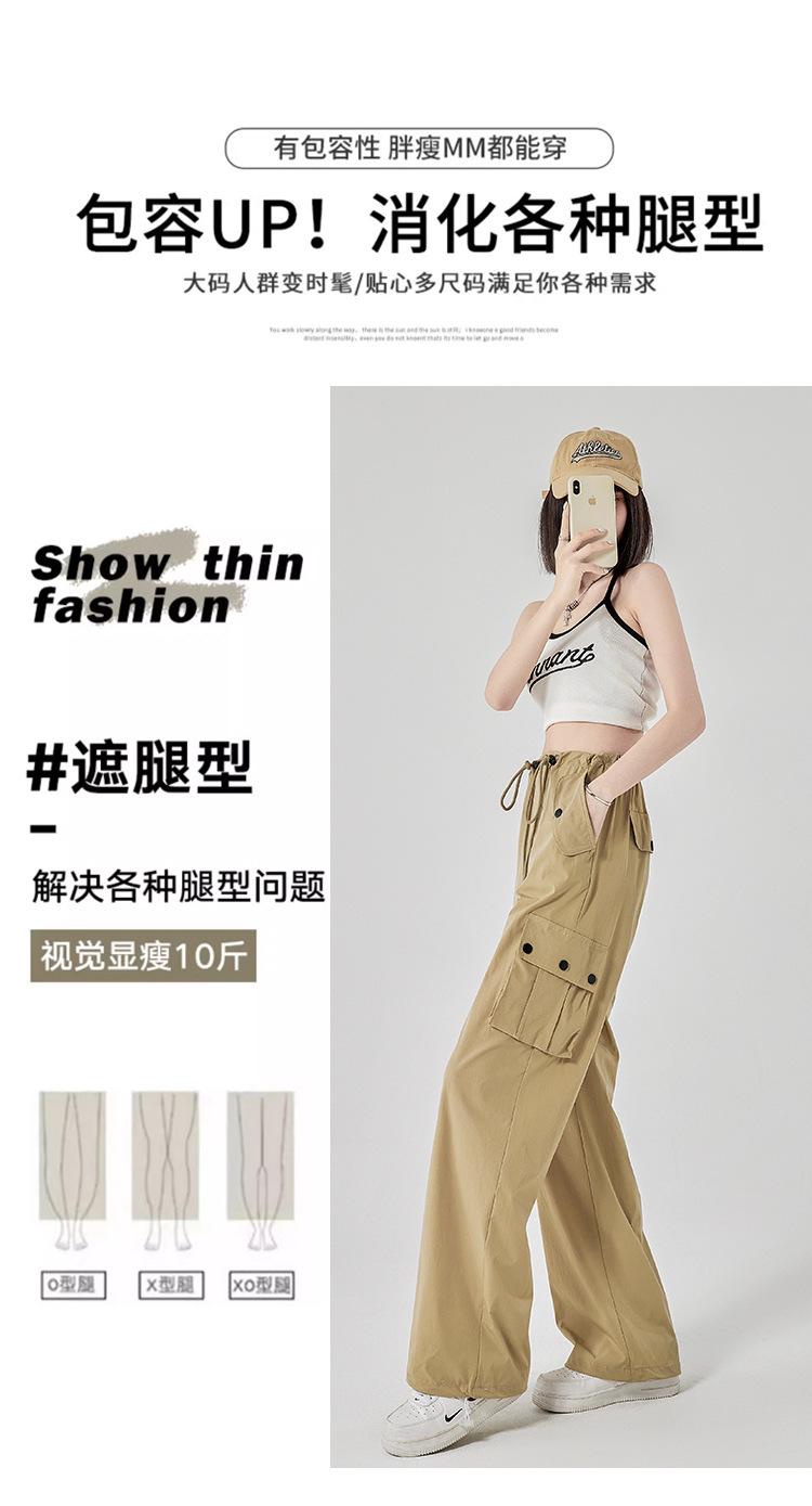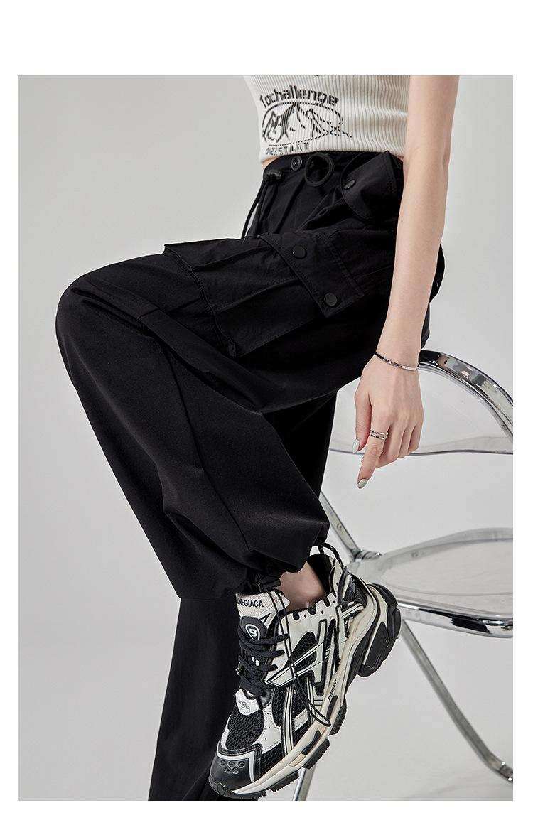 Macacão Estilo Americano Calças Femininas Verão Fino Cintura Alta Calças de Perna Larga Menina Quente Soltas Casuais Secagem Rápida Calças Esportivas