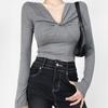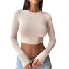 2025 Puro Desejo Camiseta Gola Redonda Menina Quente Feminina Primavera e Outono Ajuste Slim Sexy Slim Roupa Externa Umbigo Exposto Mangas Compridas