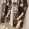 Casaco fino feminino 2 023 verão novo vintage estampado sete mangas protetor solar camisa longo chiffon cardigan