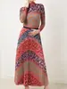 Conjunto de Duas Peças Europeu e Americano Transfronteiriço Novo Miyake Retrô de Manga Comprida e Saias, Terno de Moda Estampado Plissado para Mulheres
