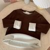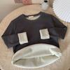Camiseta de Inverno Forrada de Lã Engrossada All-match em Torno do Pescoço Simples Roupa Externa Interior Cor Sólida Base Top