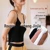 Pink halter camisole mulheres de verão curto desgaste exterior com almofada peito beleza sutiã traseiro uma peça inferior superior