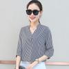 Europeu e americano personalidade moda graffiti impressão camisa de manga inchada feminino comércio exterior nova camisa de chiffon magro com decote em v 2553046