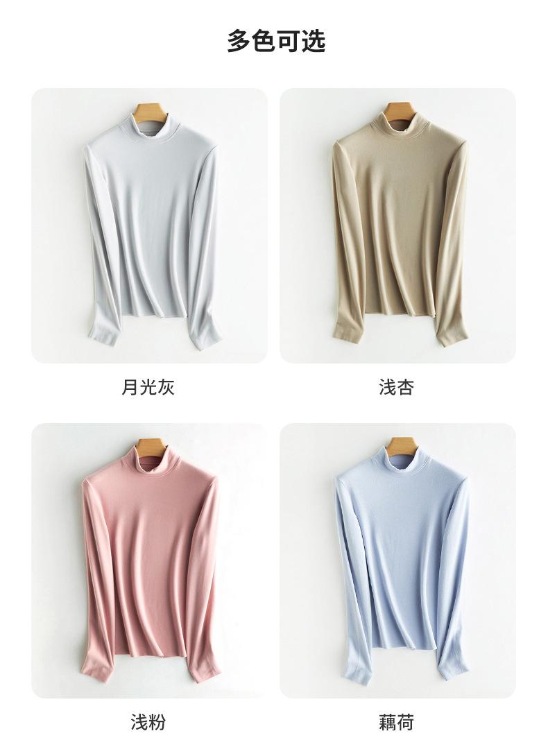 Compre Camiseta Segunda Pele Gola Alta para Mulheres, Novo Estilo Outono e Inverno, Veludo Alemão Auto-Aquecimento, Ajuste Slim, Casual, Simples, Blusa Quente no atacado no Joom.pro