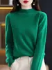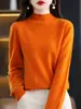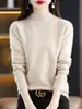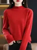 Outono e Inverno Novo Suéter Tricotado Feminino Gola Média Gola Alta Cor Pura Camiseta Básica com Estilo Estrangeiro Top de Manga Longa