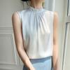 Camisola de seda feminina com decote interno e alças finas, roupa externa de verão, camisa de base sem mangas de cetim, design moderno