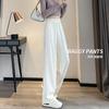 Ice Silk terno calças de pernas largas para mulheres 2024 novo verão fino estreito cintura alta drapeando calças retas casuais