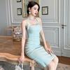 Vestido Elegante Retrô Francês Branco de Alças Halterneck para Mulheres Verão Ombro a Ombro Modelagem Emagrecedora na Cintura Saia com Fenda 5683